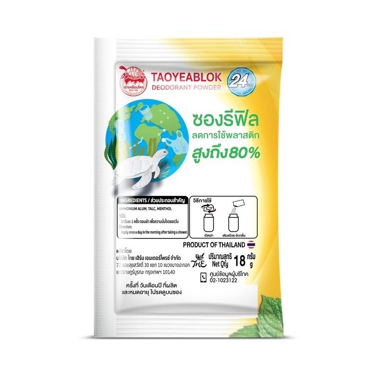 (แท้) Taoyeablok Deodorant Powder 18g #Mentrol เต่าเหยียบโลก ดีโอโดแร้นท์ พาวเดอร์ แป้งระงับกลิ่นกาย (แบบซอง)