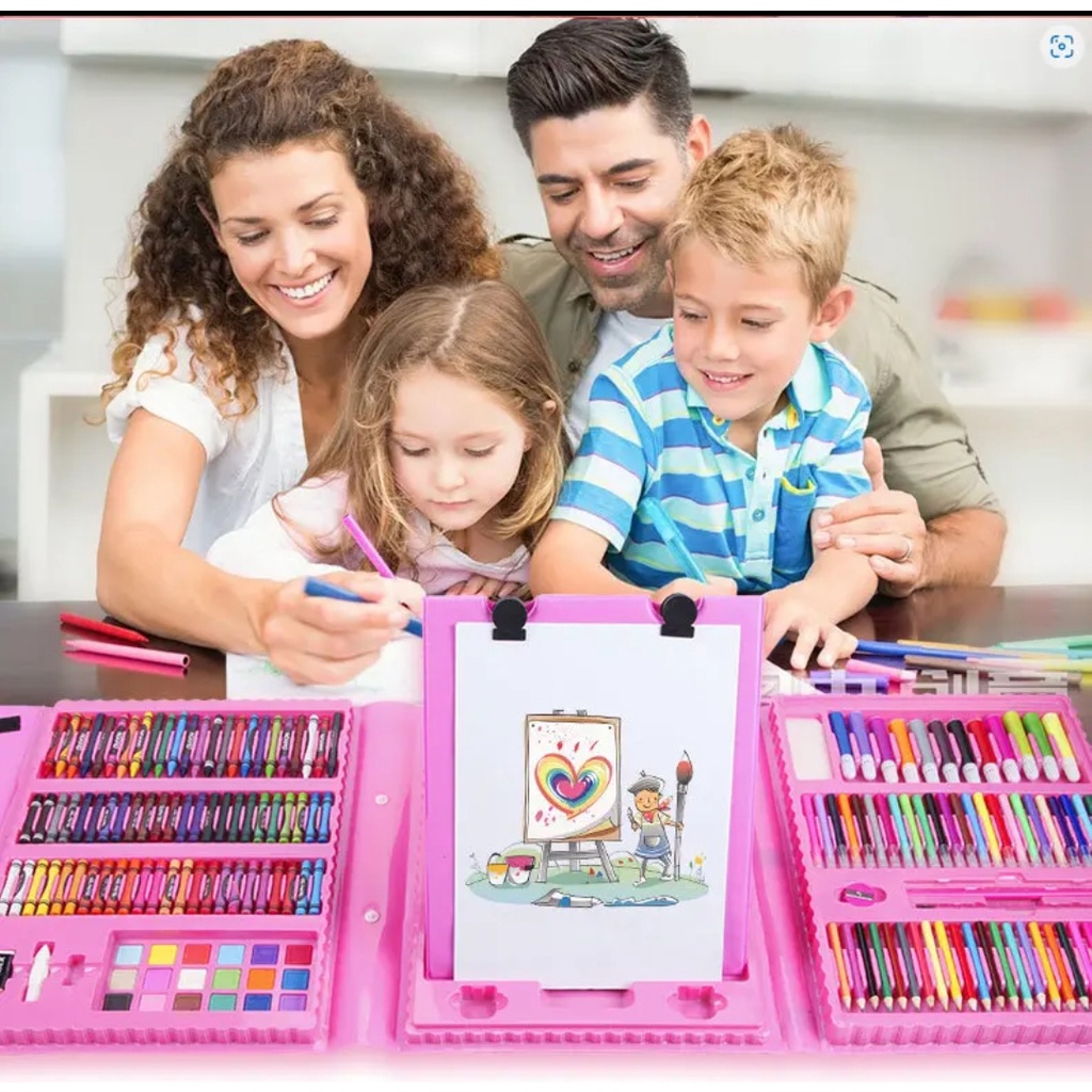 ชุดปากกาสีน้ำ 208 ชิ้น เครื่องมือวาดภาพสำหรับเด็ก กล่องวาดภาพศิลปะ ปากกาสี กล่องของขวัญแปรงครบชุด
