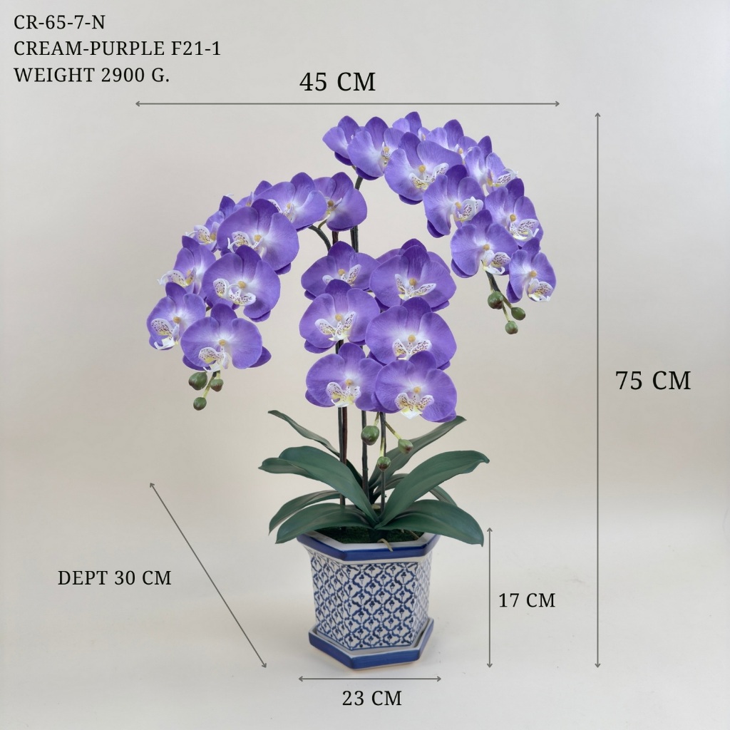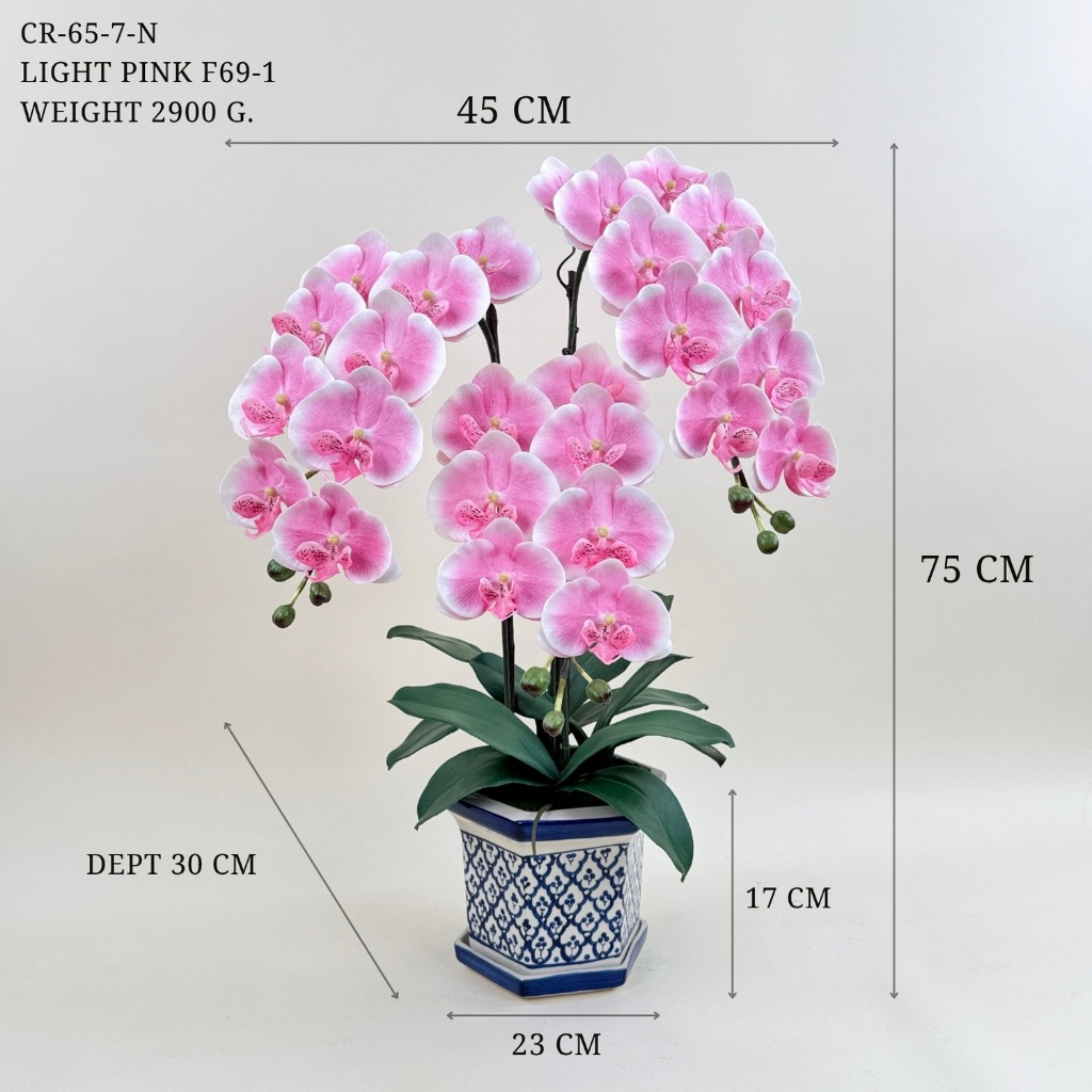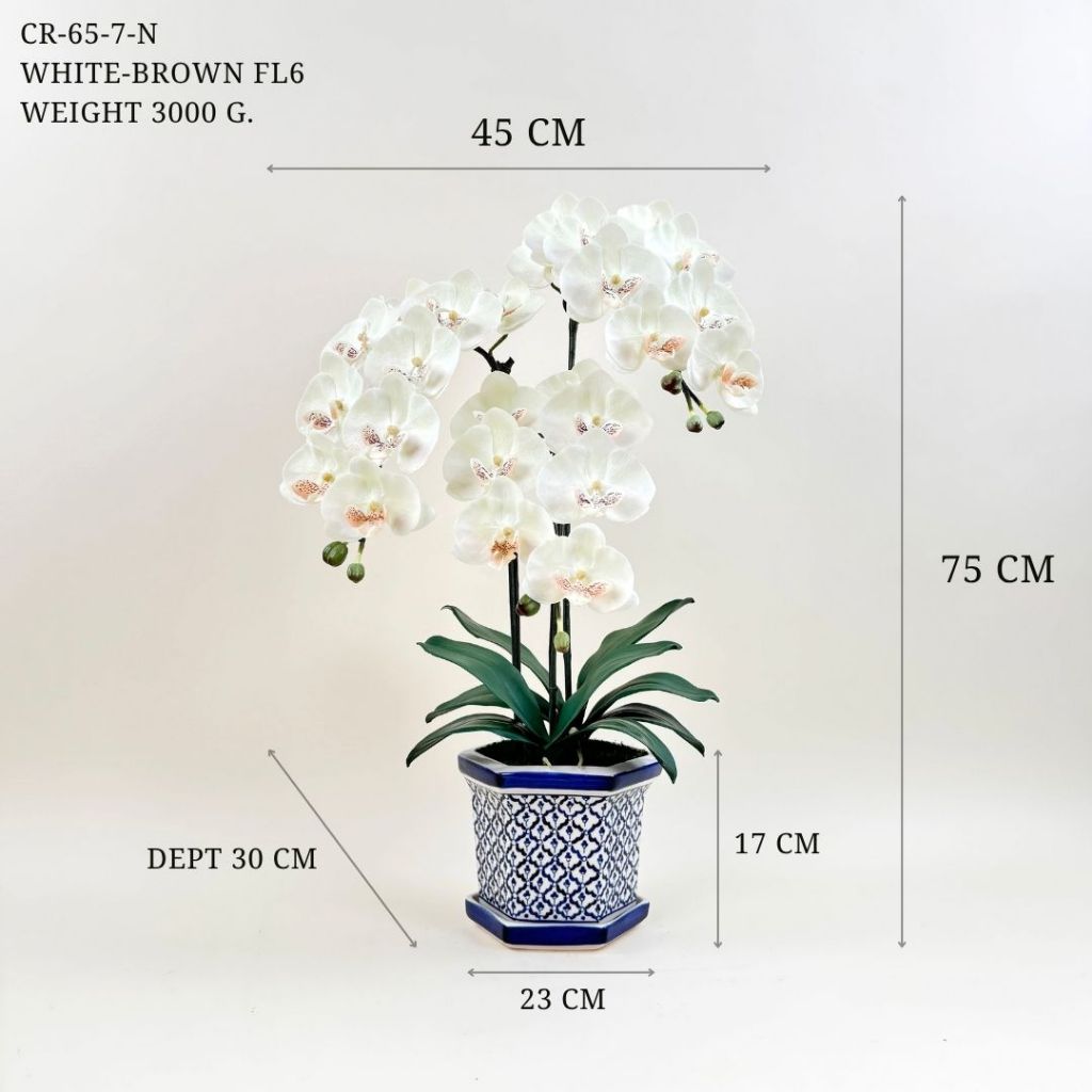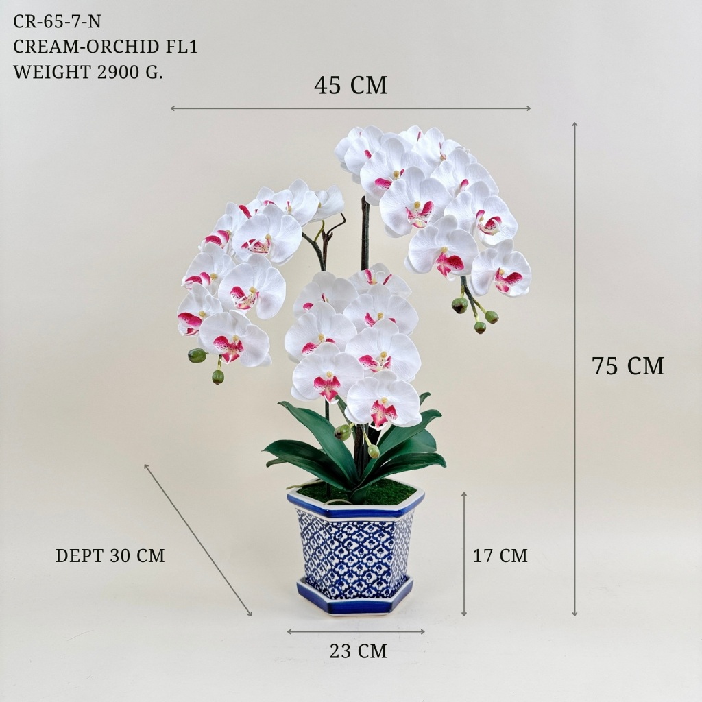 กระถางกล้วยไม้ปลอม ดอกกล้วยไม้จัดในกระถางลายไทยพร้อมจานรอง