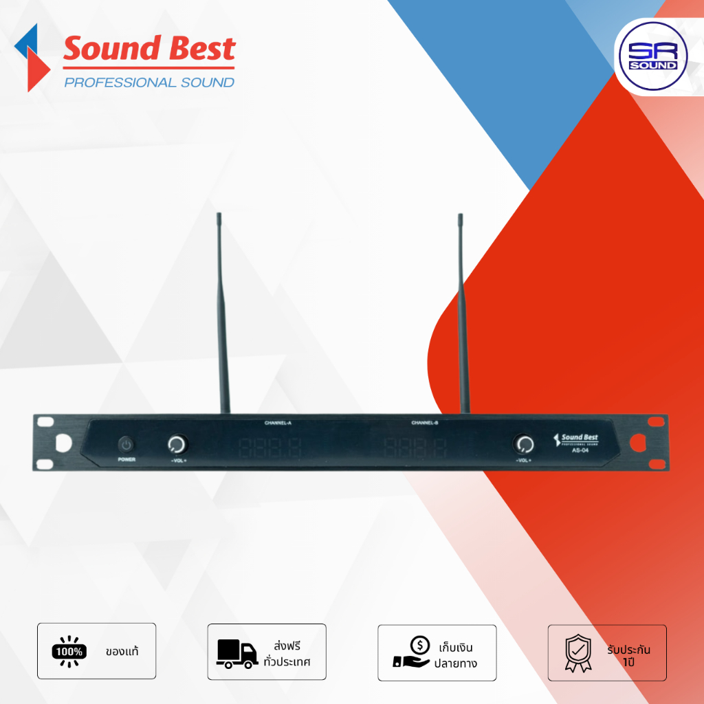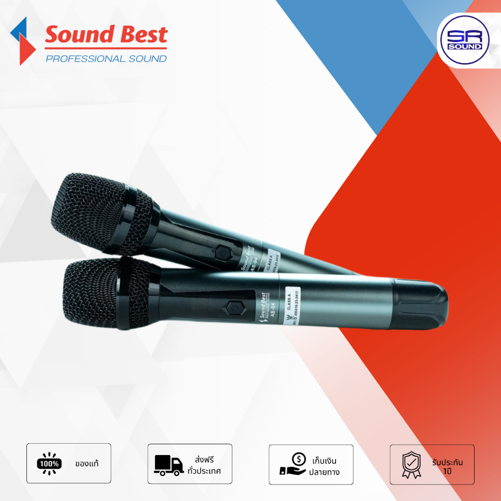 SOUNDBEST AS04 ไมค์ลอย 2 ตัว ไมค์ไร้สาย ไมค์โครโฟนไร้สาย ไมค์คู่ ไมค์คาราโอเกะ SOUND BEST AS-04 AS04