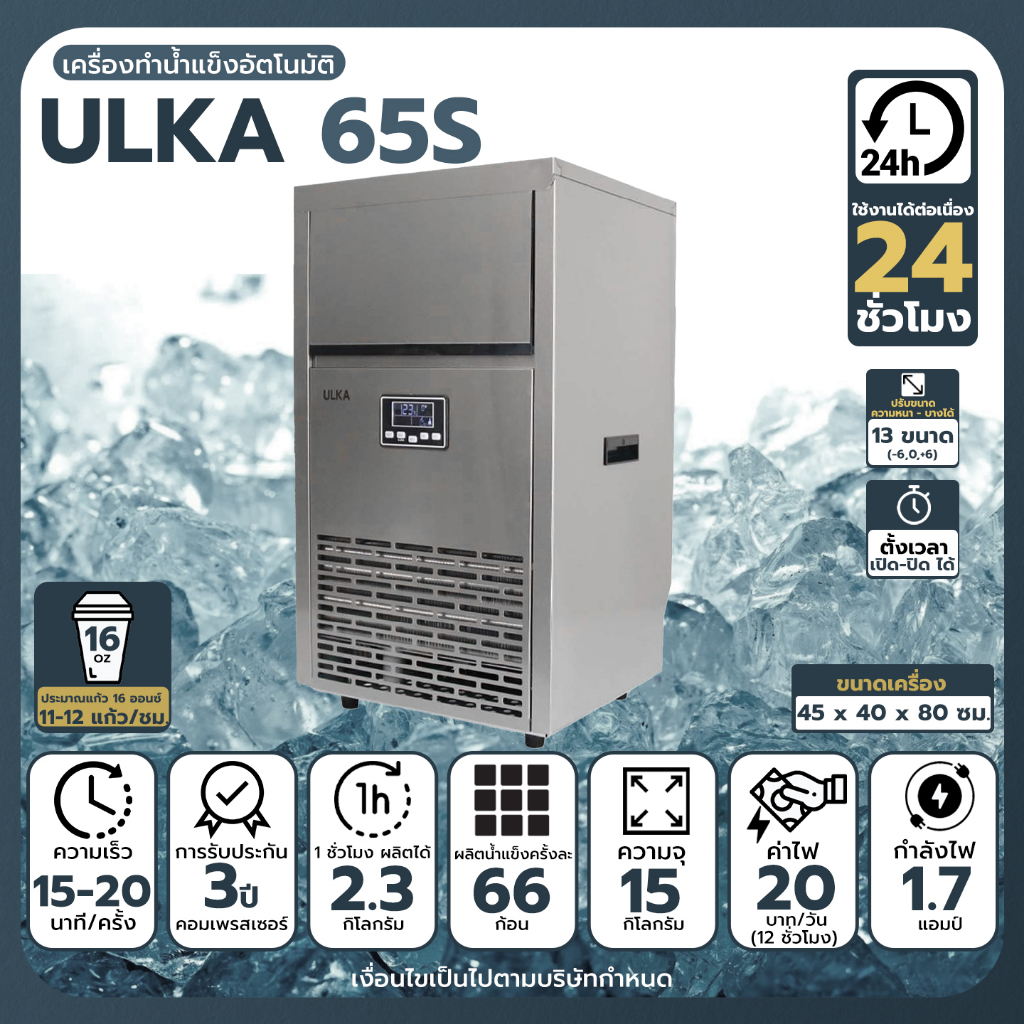 เครื่องทำน้ำแข็งอุตสาหกรรม ULKA 65S เครื่องผลิตน้ำแข็ง กำลังผลิต 65 กก./วัน เหมาะกับธุรกิจ ออฟฟิศ