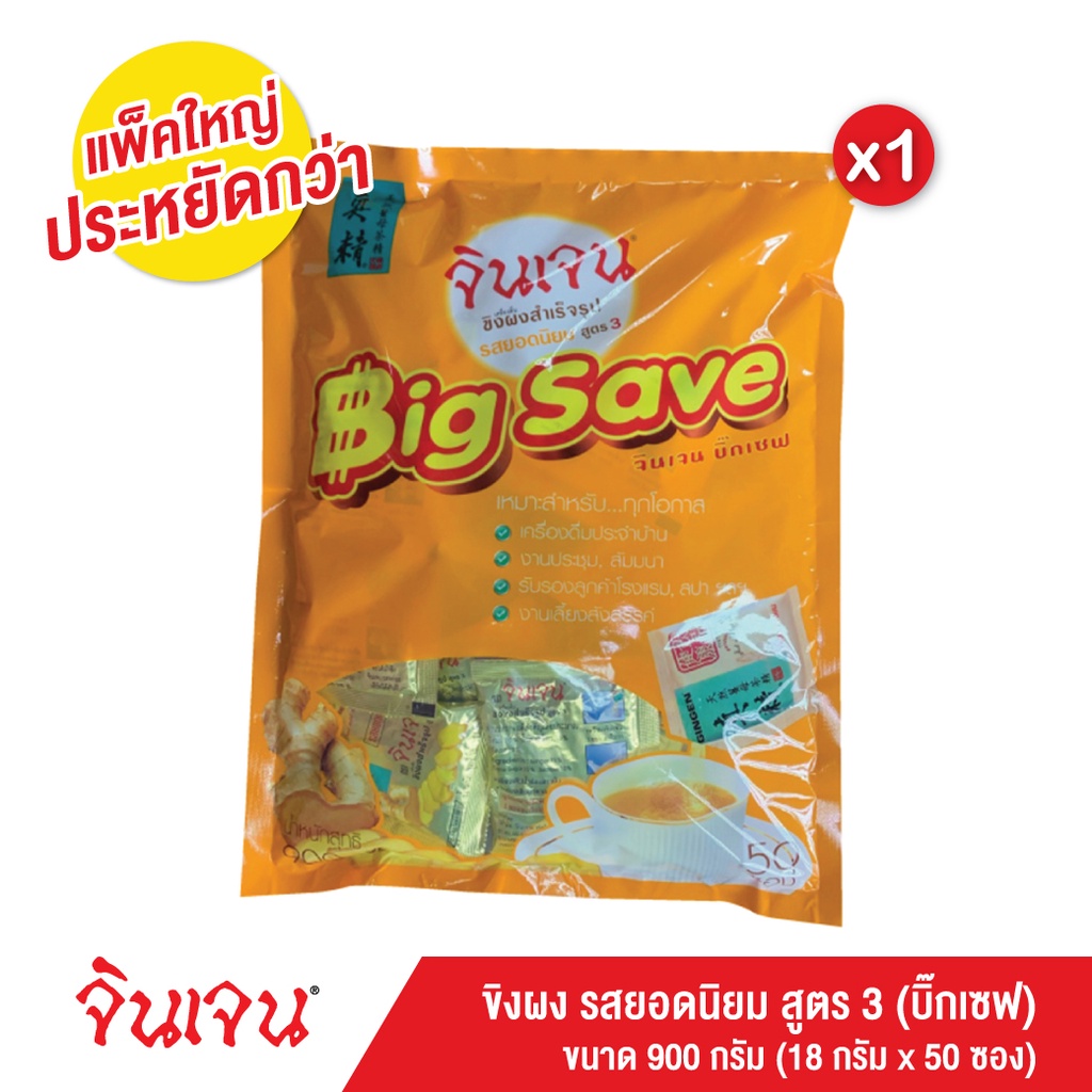 จินเจน ขิงผงรสยอดนิยม ผสมบราวน์ชูก้าร์ x 1 ถุง (50 ซอง) 900 g ขิงผงสำเร็จรูป น้ำขิงชงดื่ม ชาขิง Gingen Instant Ginger