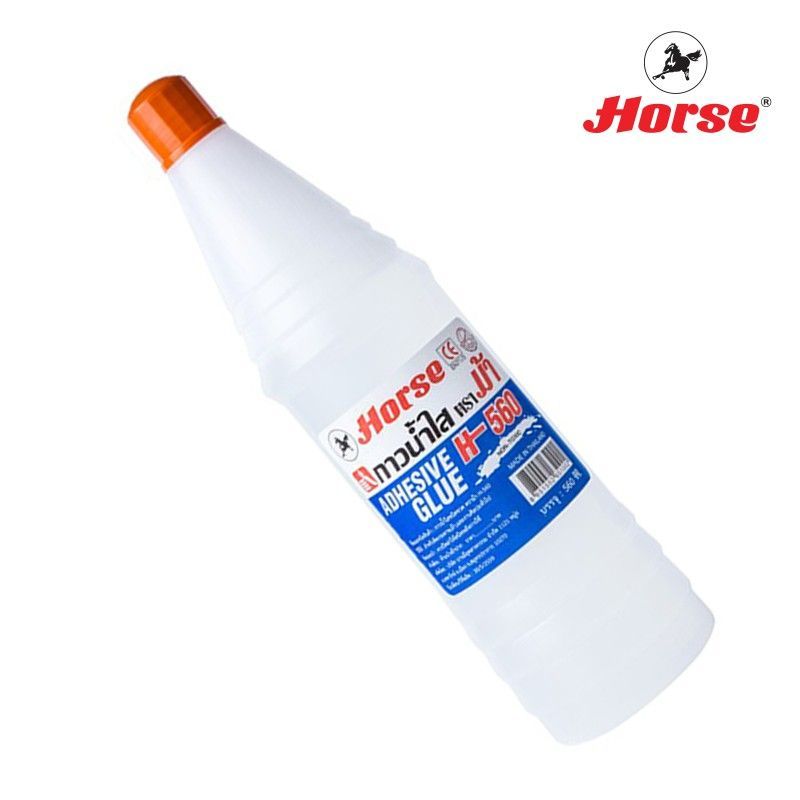 Horse กาวน้ำใสตราม้า ขวดใหญ่ จัมโบ้ 560 cc. Non-Toxic ไร้สารพิษ เนื้อใส แห้งเร็ว ติดแน่น ทำสไลม์ได้