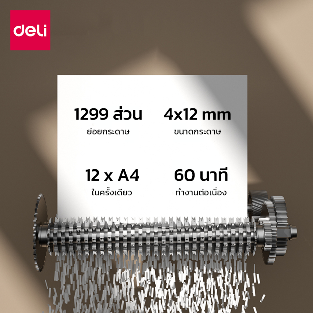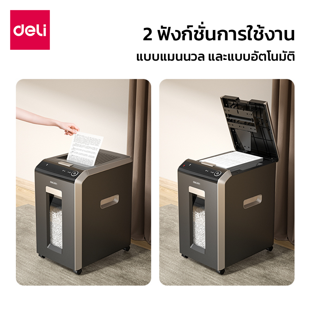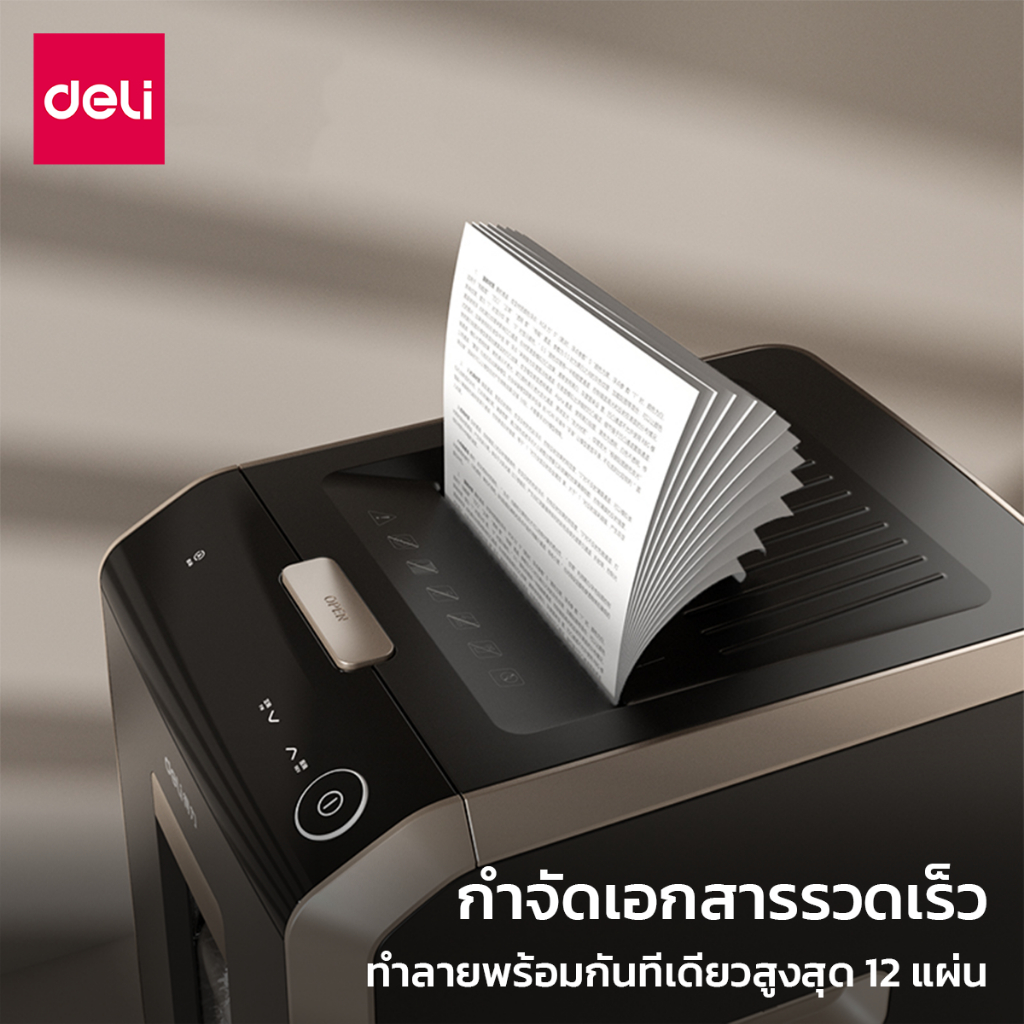 Deli เครื่องทำลายเอกสาร 32ลิตร เครื่องทำลายเอกสารอัตโนมัติ A4 12แผ่น ย่อยอัตโนมัติ150-200แผ่น Paper Shredder