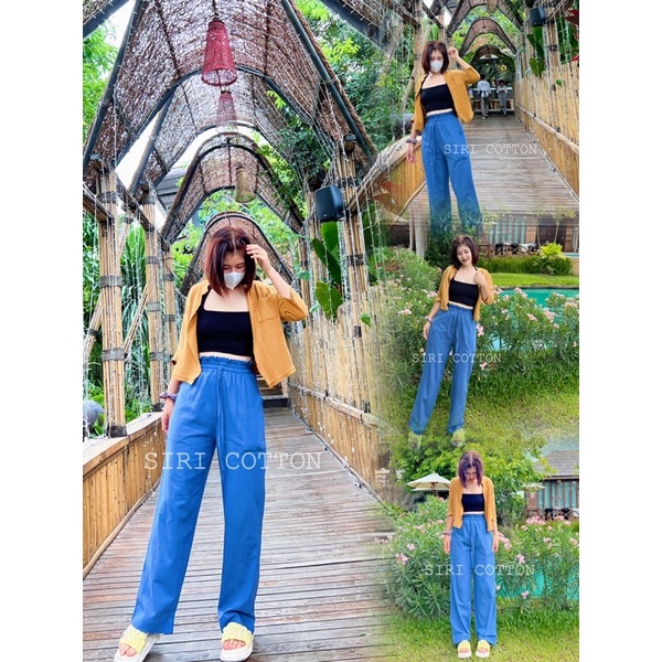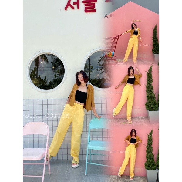 กางเกงขายาวเอวสูง เอวจีบใส่เชือก(เชือกรูดได้จริง) ความยาว 41-42 นิ้ว สูง170 ใส่ได้ไม่เต่อ กางเกงขายาว กางเกง
