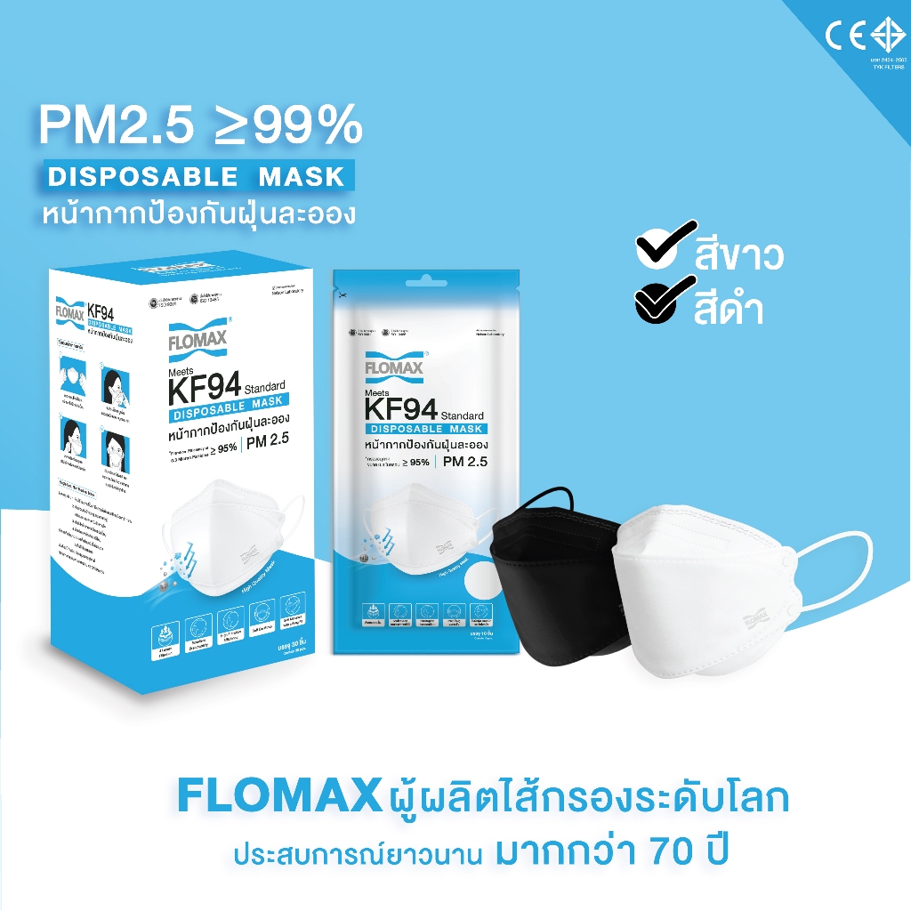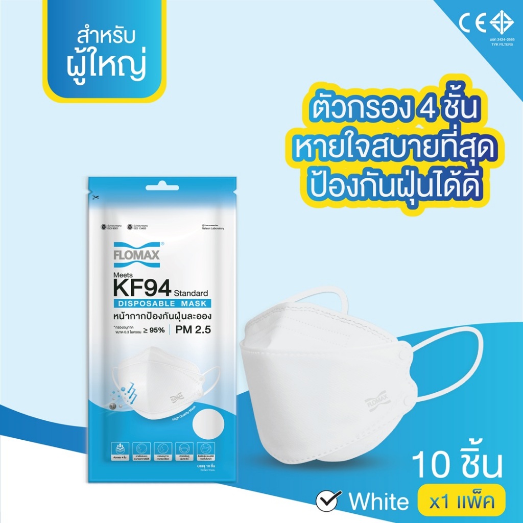 หน้ากากอนามัย หน้ากากป้องกันฝุ่นละออง Flomax KF94 ขนาด 50 แพ็ค หรือ 20 กล่อง
