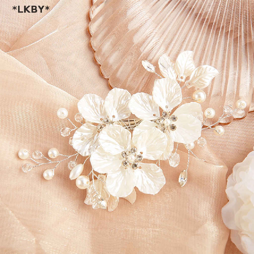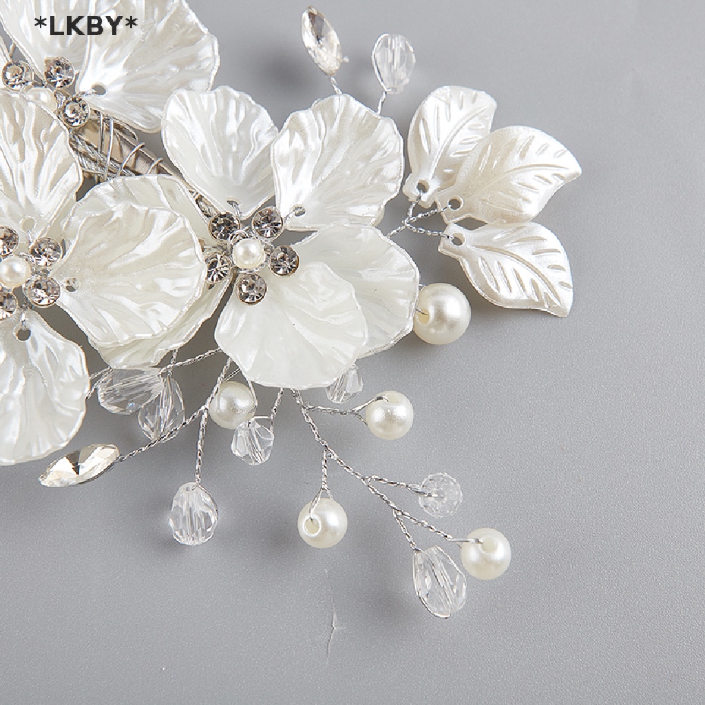 Luckybabys เจ้าสาวคริสตัลมุกดอกไม้ดอกไม้ Barrette ผมอุปกรณ์จัดงานแต่งงาน