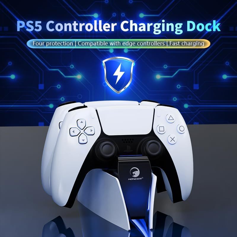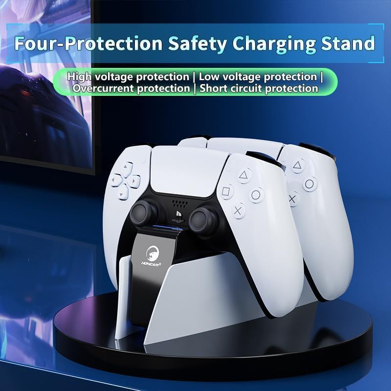 Honcam Tri-Protection อุปกรณ์ที่ชาร์จควบคุมความปลอดภัย แบบคู่ สําหรับจอย PS5 DualSense