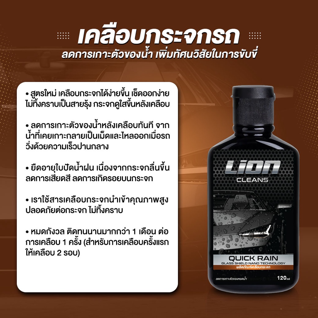 Lion Cleans Quick Rain น้ำยาเคลือบกระจกรถยนต์ ลดการเกาะตัวของหนดน้ำ แถมผ้า 1 ผืน