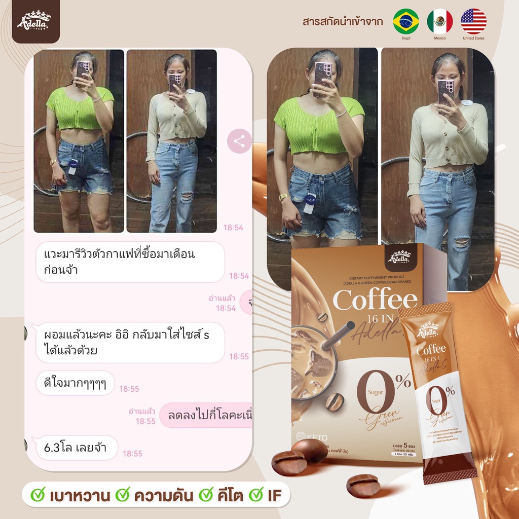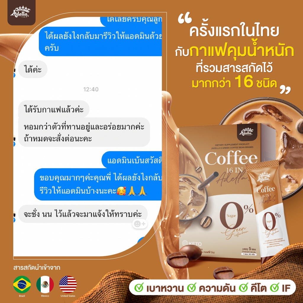 ส่งด่วน!! Adella S Green Coffee กาแฟคุมหิว กาแฟอเดลล่า 1 กล่อง กล่องละ 5 ซอง