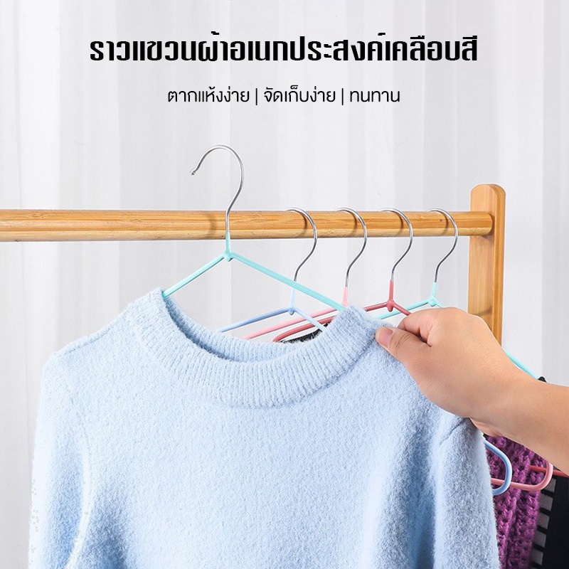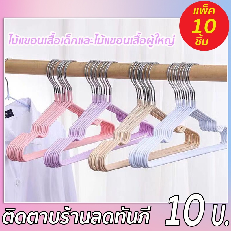 RAYPALไม้แขวนเสื้อ ไม้แขวนสแตนเลส เคลือบซีลีโคนกันลื่น 2ขนาด ไม้แเขวนเสื้อเด็ก 30cm ผู้ใหญ่40cm สีพาทเทลน่ารัก1แพค10ชิ้น
