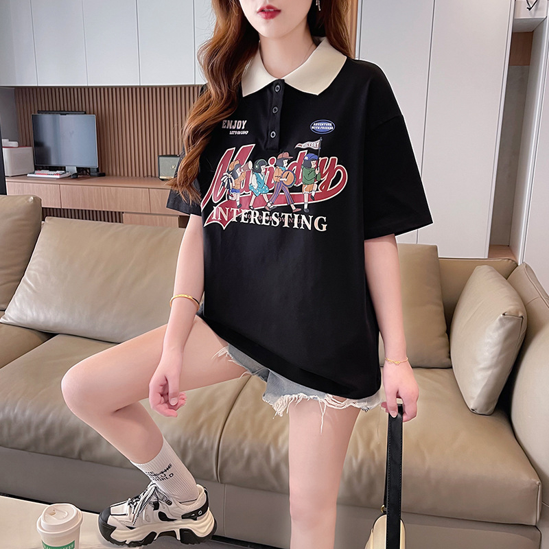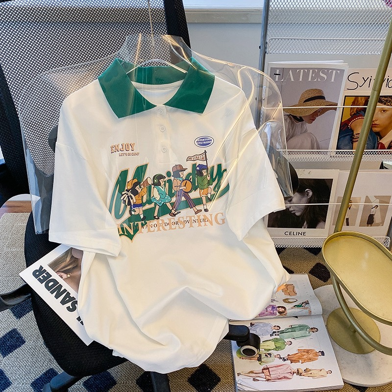 เสื้อแขนสั้นคอปก เสื้อโปโล Oversize {อก 42-60 นิ้ว} สกรีนลายด้านหน้า ผ้าคอตตอล (สินค้าขายดี) A23