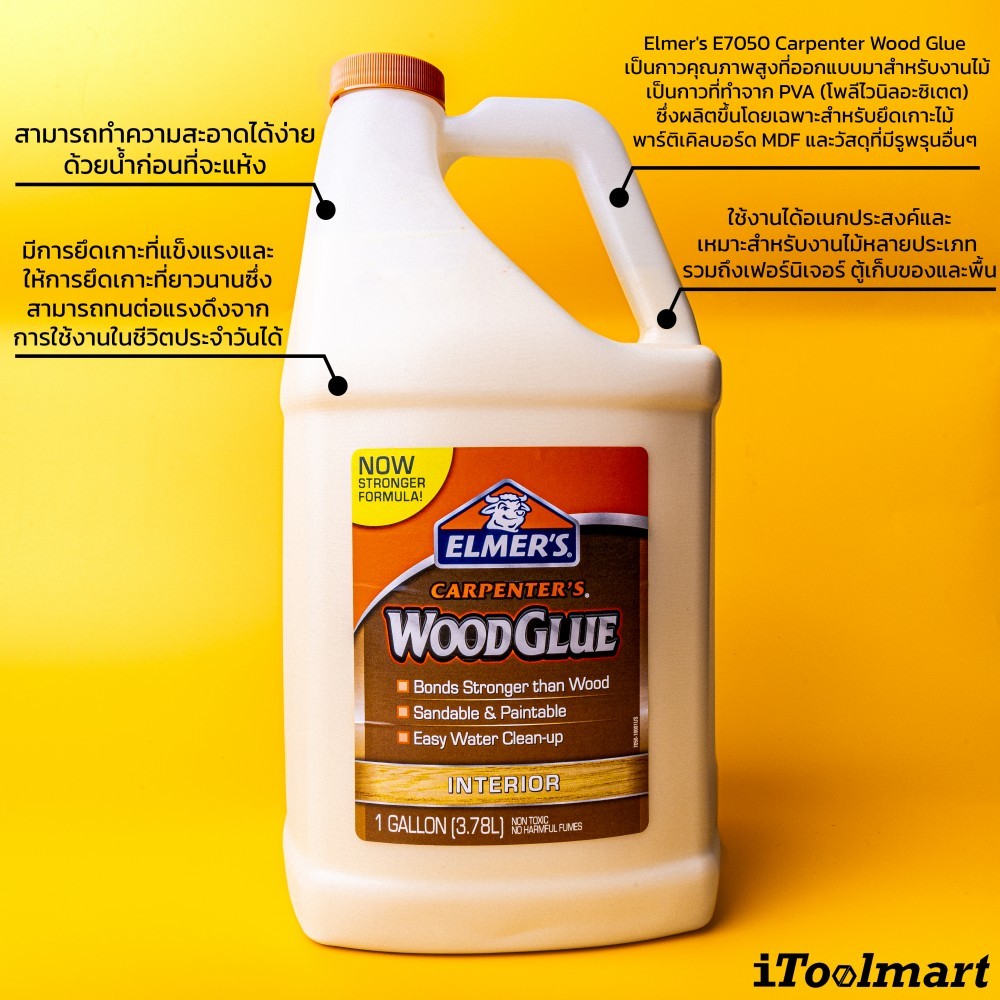 Elmer's Wood Glue กาวลาเท็กซ์ กาวติดไม้ E7050LMR Carpenter ขนาด 128 OZ (3785 ml.) แบบ แกลลอน สีขาว