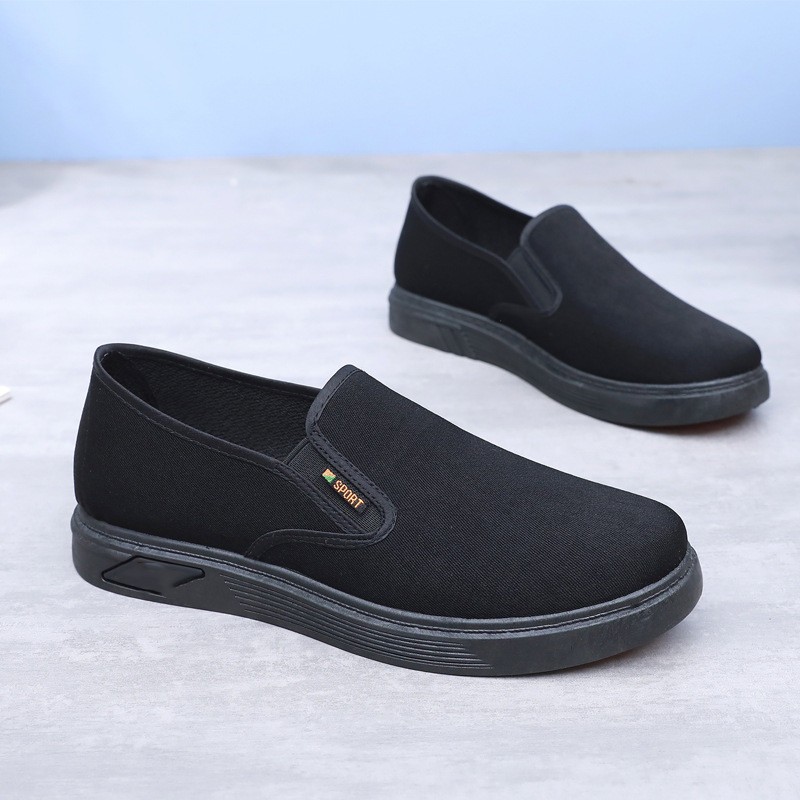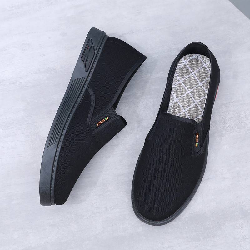 2026 ผู้ชายผ้ารองเท้าวัวเอ็นด้านล่างลื่นทนต่อการขัดถูปากตื้นหนึ่งเท้าเหยียบรองเท้าทำงานสีดำสำหรับผู้ชาย