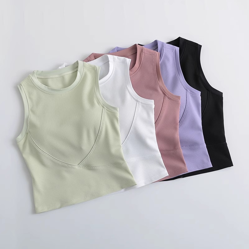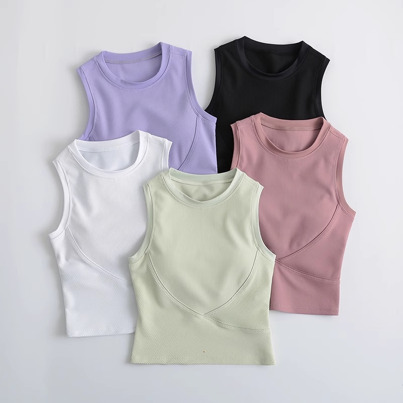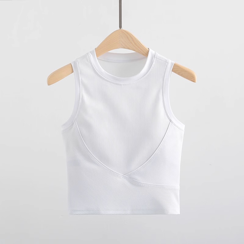 OLALA LEISURE ฤดูร้อน แขนกุด พร้อมแผ่นอก วิ่ง ฟิตเนส ยืด รัดรูป โยคะ สวมใส่ ยาง กีฬา เสื้อกั๊ก ผู้หญิง สวมกลางแจ้ง ชุดชั้นใน โยคะ