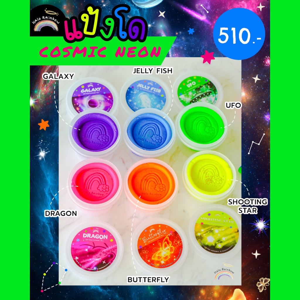 ใหม่!! แป้งโด Cosmic Neon เซตแป้งโดสีนีออน ประดับผงstar dust 6สี พร้อมกระเป๋า