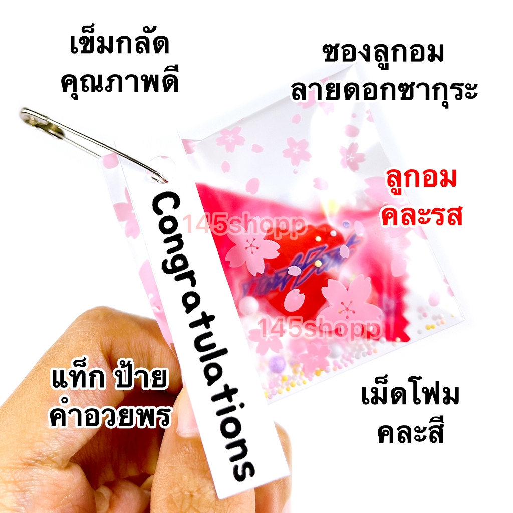 ซองลูกอมจิ๋ว ติดเข็มกลัด 1เม็ด มีป้ายคำอวยพร พร้อมใช้ ของแจก ให้เป็นของขวัญ วันเรียนจบ ปัจฉิม