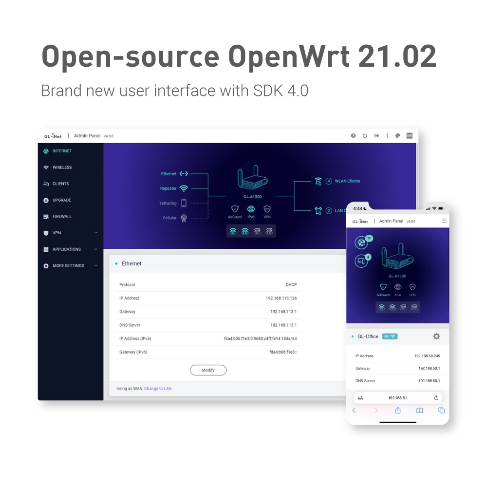 GL.iNet GL-A1300 (Slate Plus) เราเตอร์เดินทางเข้ารหัส VPN ไร้สาย, ความปลอดภัยทางอินเทอร์เน็ต, โอเพ่นซอร์ส, ขนาดพกพา, NAS