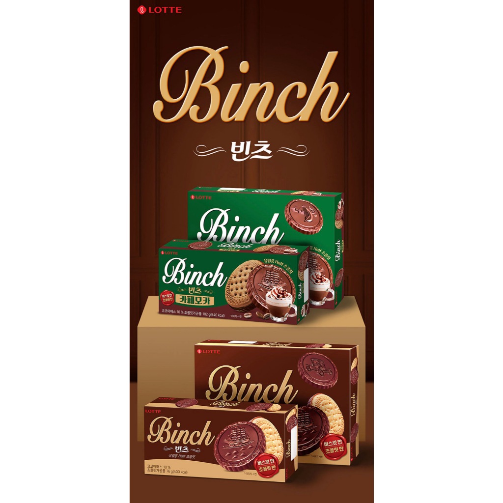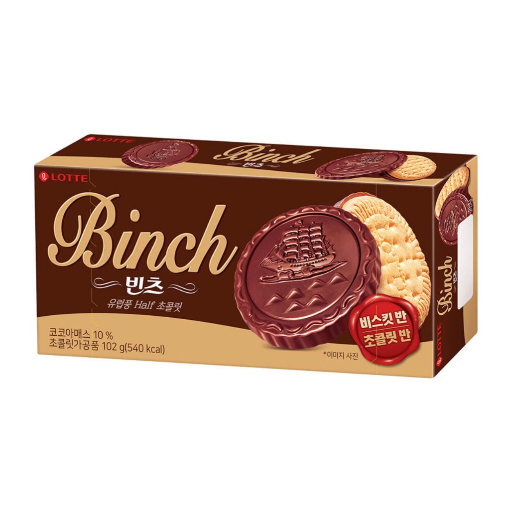 [ของแท้] 빈츠 Lotte Binch (คุกกี้เนยเคลือบช็อกโกแลต) 102g