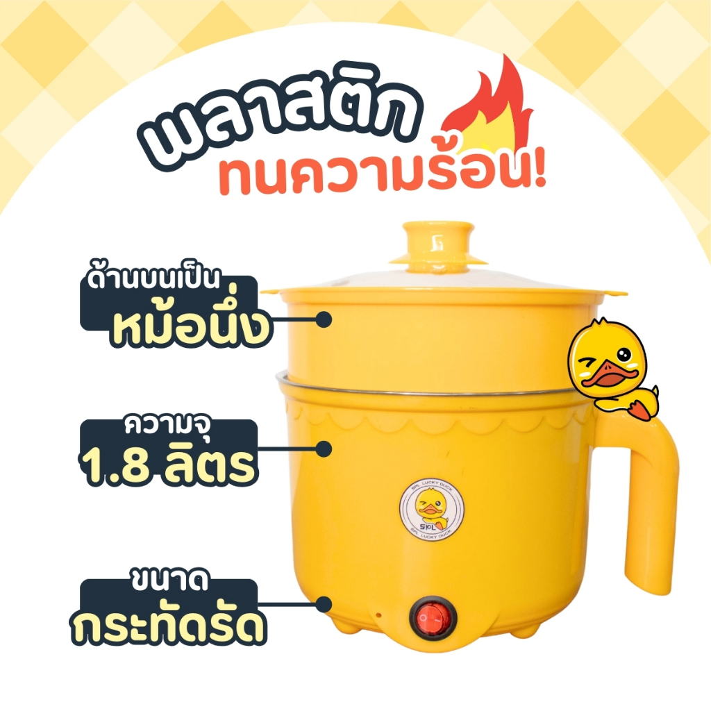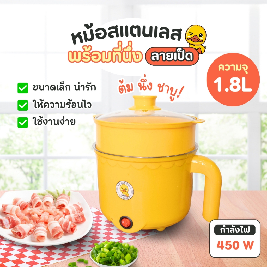 หม้อชาบู ลายเป็ด ขนาด1.8ลิตร ขนาดกะทัดรัด หม้อชาบูเคลือบเทปล่อน ผัดได้ ต้มได้ หม้อต้มไฟฟ้า หม้อสแตนเลส หม้อเทฟล่อน หม้อ