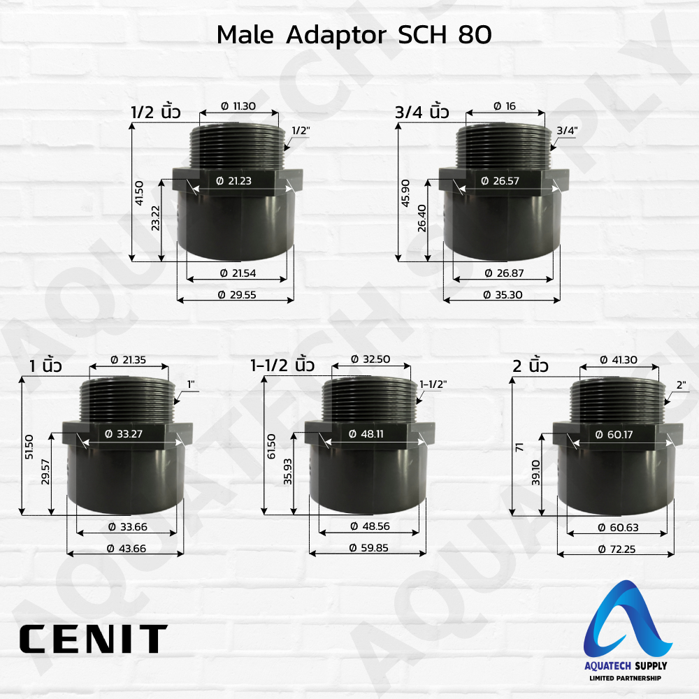 ข้อต่อตรงเกลียวนอก ไม่เกิน 2 นิ้ว CENIT สวมทากาวท่อ uPVC สีเทา 1 ด้าน และสวมเกลียวนอก NPT 1 ด้าน