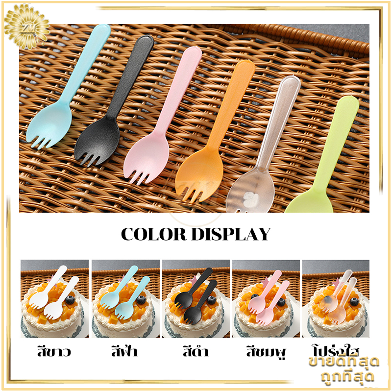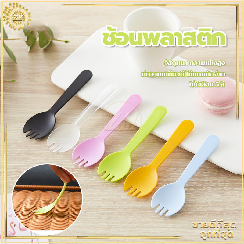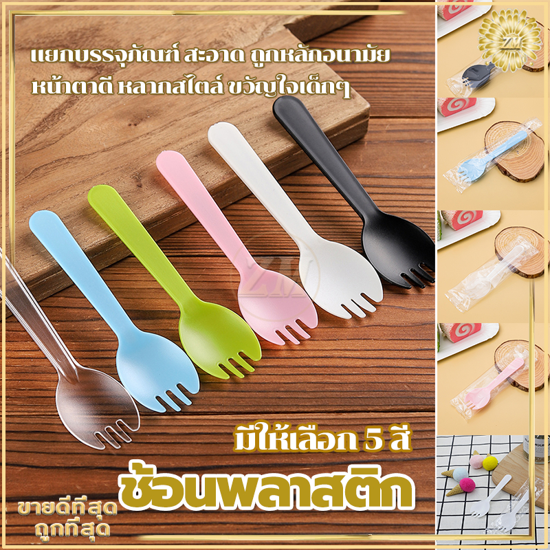 ช้อนพลาสติก ช้อนไอติม (100ชิ้น) ช้อนพลาสติกใช้แล้วทิ้ง ส้อมพลาสติก ช้อนตักขนม ช้อนส้อมพลาสติก ใส่ถุงแยกทุกชิ้น