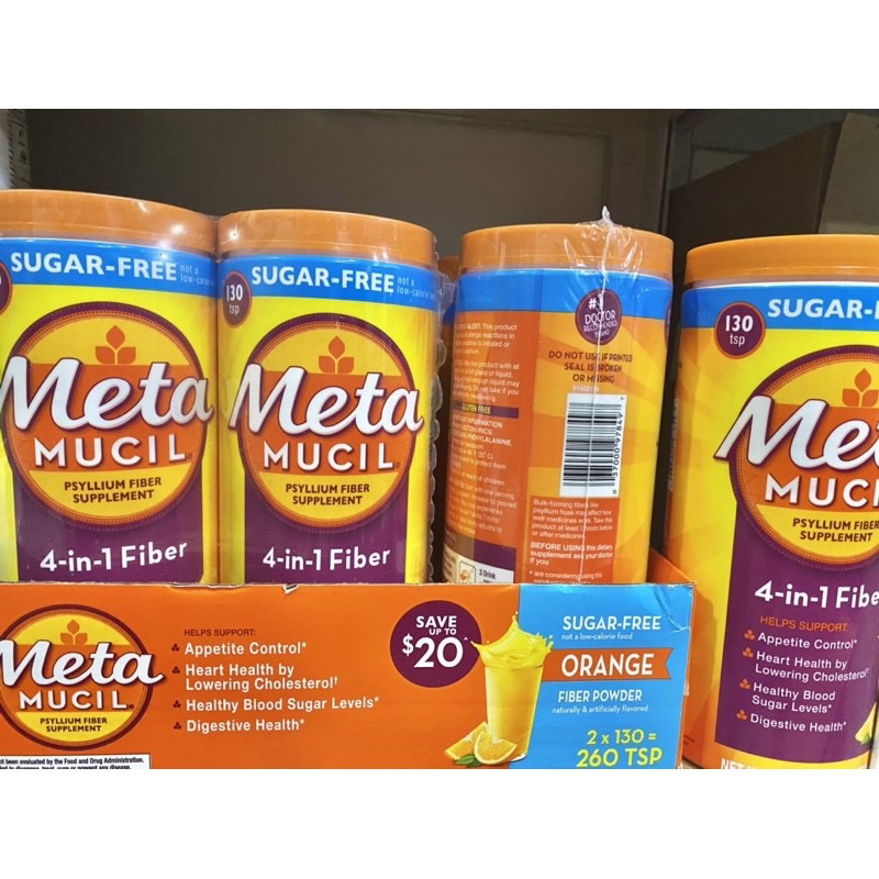 นำเข้า🇺🇸 EXP06/28 130ช้อนขา 754g Metamucil Psyllium Husk Powder Sugar-Free 4in1 Fiber for Digestive Health 130 teaspoon