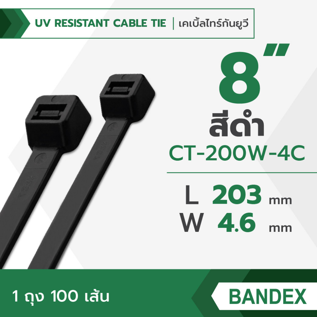 BANDEX UV เคเบิ้ลไทร์ยูวี สีดำ ขนาด 8 , 10, 11, 12, นิ้ว สายรัดจับเก็บอเนกประสงค์ 1ถุง/100เส้น ของแท้