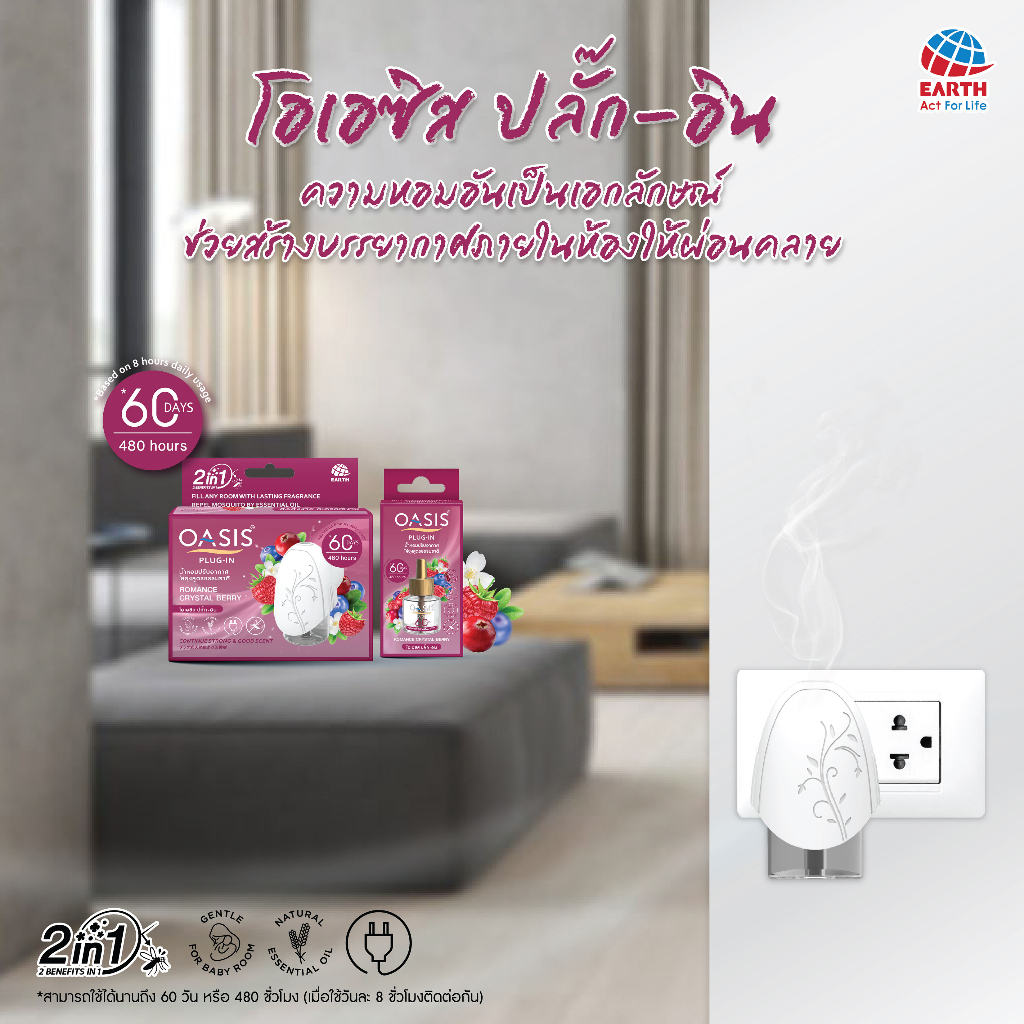 OASIS โอเอซิส ปลั๊ก-อิน น้ำยารีฟิล น้ำหอมปรับอากาศ ไฟฟ้า กลิ่น โรแมนซ์ คริสตัล เบอร์รี่