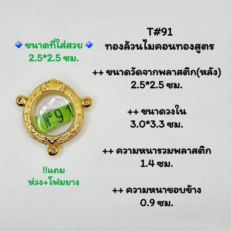T#91 ตลับพระ/กรอบพระไมคอนทองสูตร ขนาดวงใน 3.0x3.3 ซม พิมพ์เหรียญกลม3หู < ขนาดที่ใส่สวย 2.5x2.5 ซม >