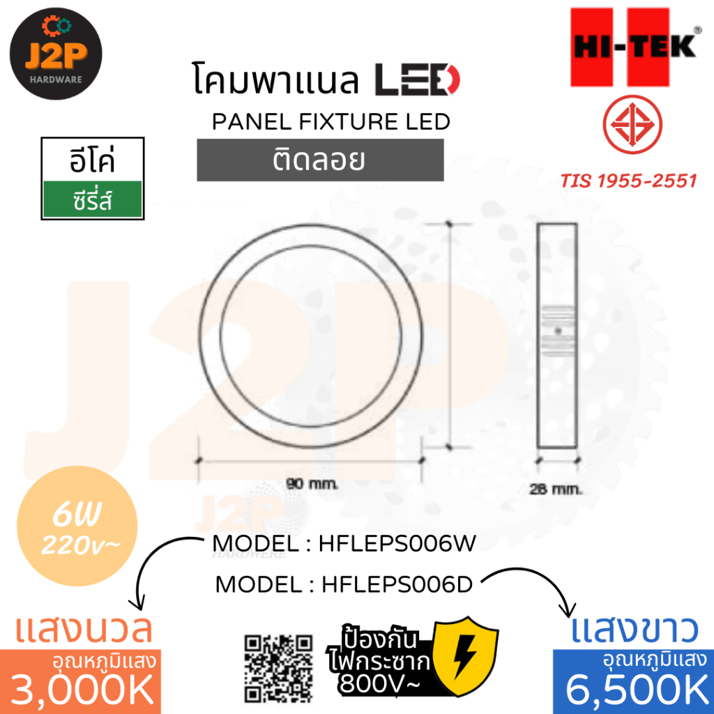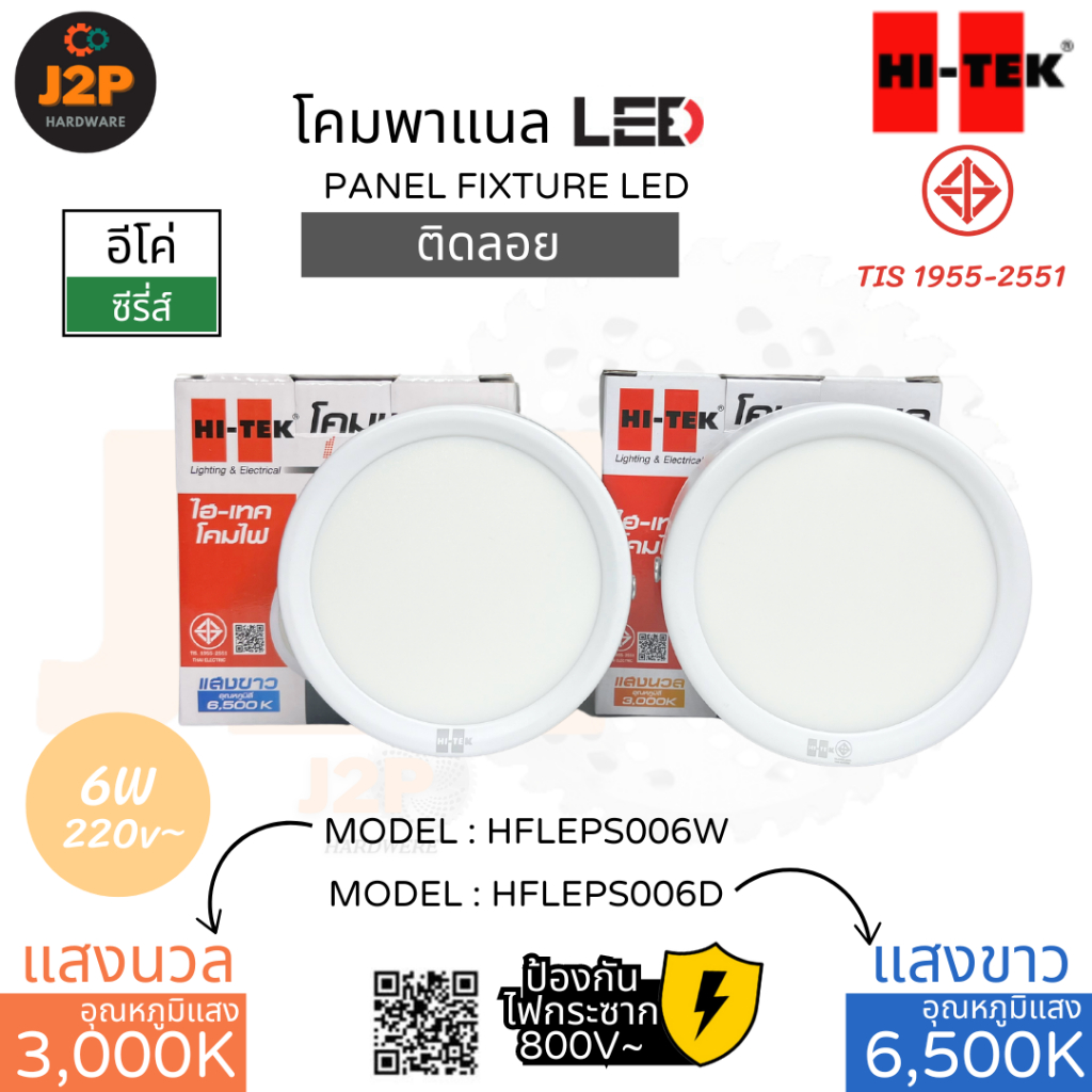 HI-TEK โคมพาแนล LED โคมไฟ ไฮ-เทค อีโค่ซีรี่ส์ ติดลอย แบบกลม 6W 12W 18W warmwhite 3000K, daylight 6500K J2P