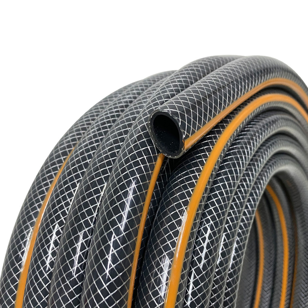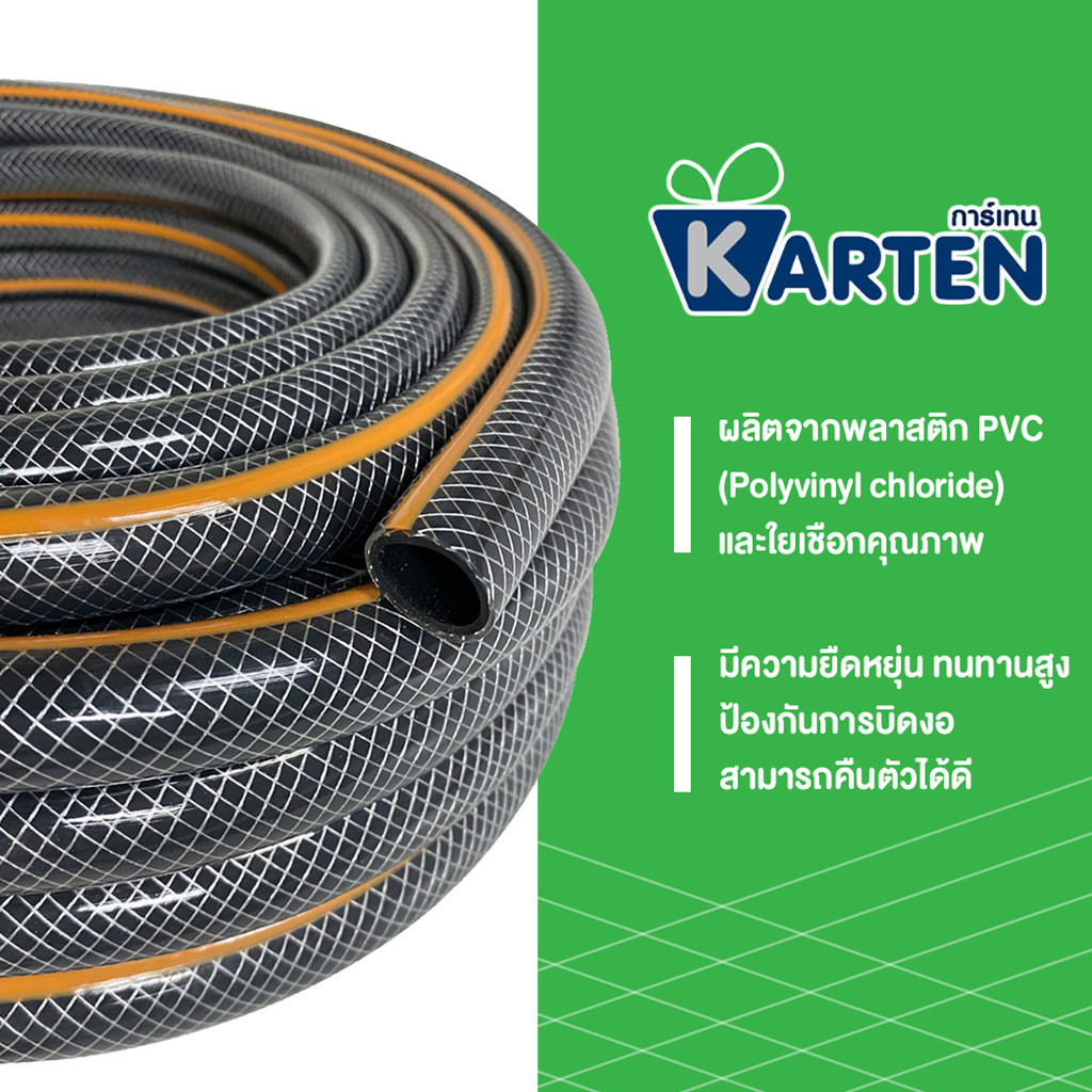KARTEN สายยางใยเชือก Diamond 5/8 นิ้ว ยาว 20 เมตร สีดำแถบส้ม
