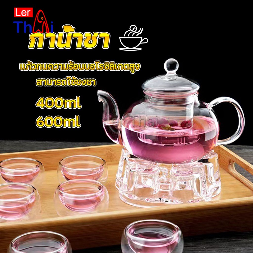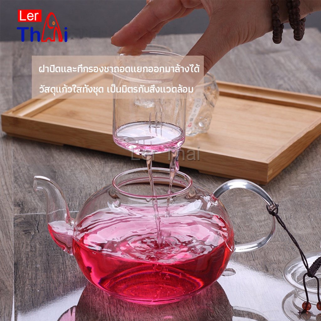 LerThai กาชงชาแก้วทนความร้อนสูง 400ml/600ml กาน้ำชาคุณภาพพรีเมี่ยม ใช้ได้ทั้งชาร้อน ชาเย็น Glass Teapot