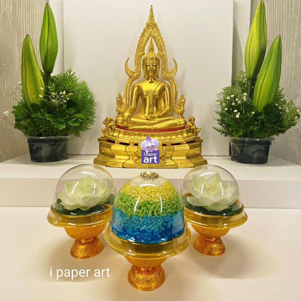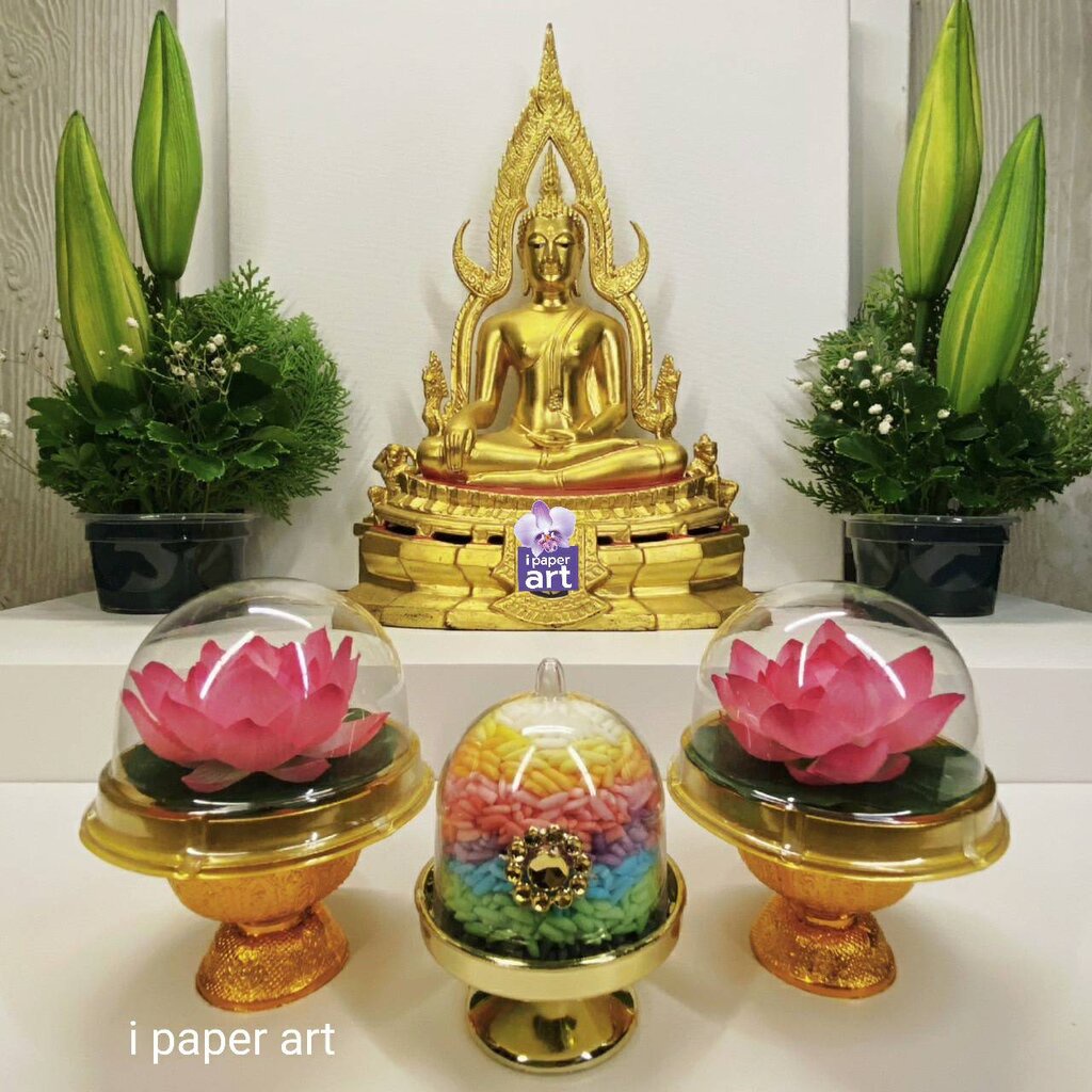 ข้าวดอกบัว | ชุดบูชาพระ พระแม่กวนอิม และเทวดาทุกพระองค์ สินค้าไทย งานปราณีต | หิ้งที่มีพื้นที่จำกัด
