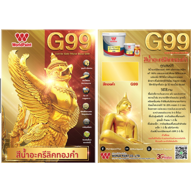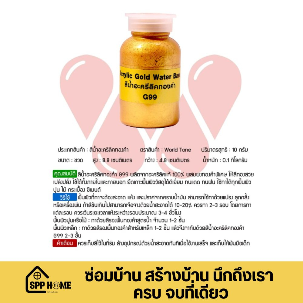 WorldTone G99 สีทองคำอะคริลิคแท้100% สีทองทามือเท้าได้ ทาได้ทุกพื้นผิว ขนาด100กรัม