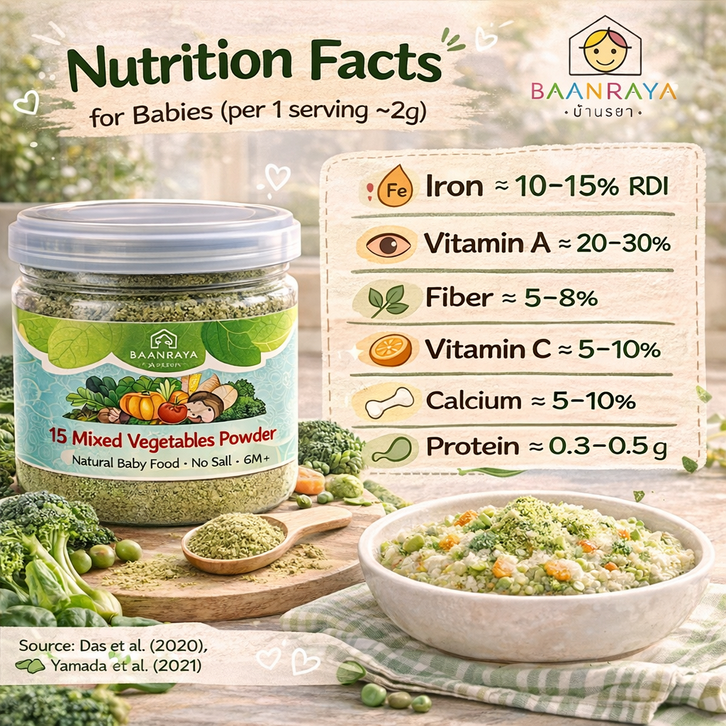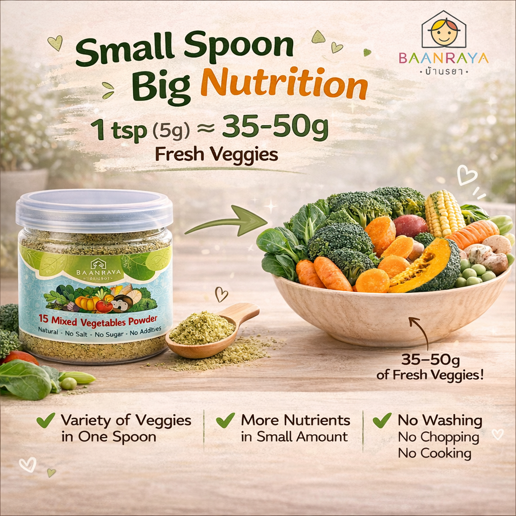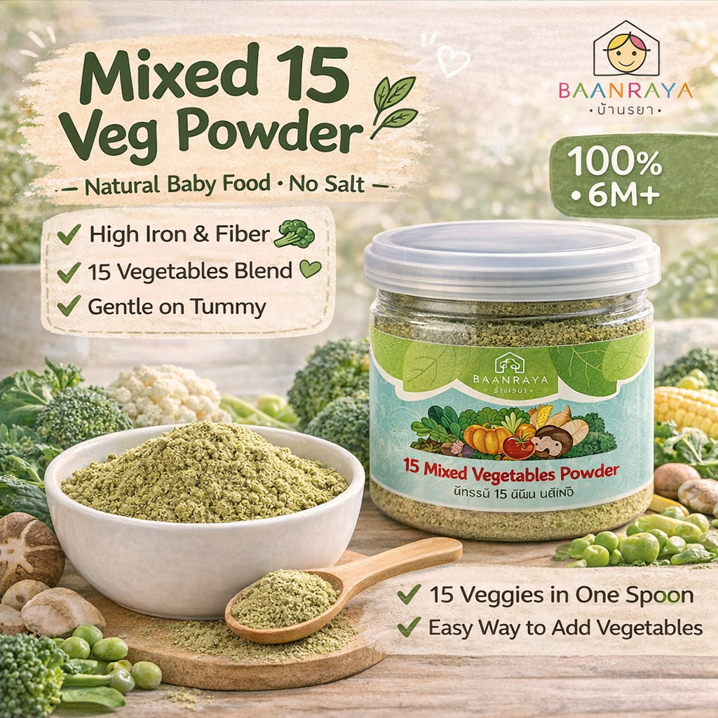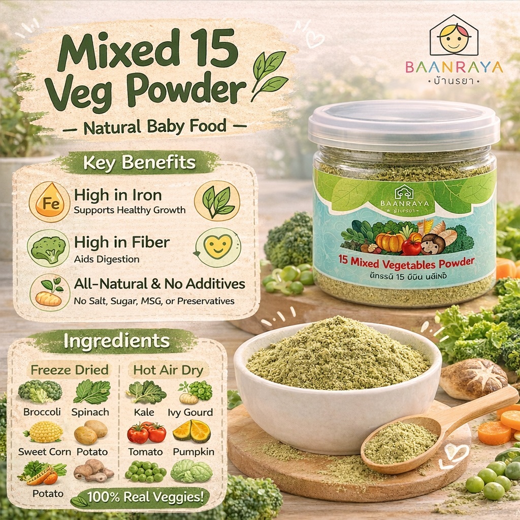 🥕🥦🍅 ผักรวม 15 ชนิด🔥ผงผักเด็ก 6M+ ฟรีซดราย ❄️ ธาตุเหล็ก ไฟเบอร์ ไม่ปรุงรส | Mixed 15 Veg Powder BLW BaanRaya