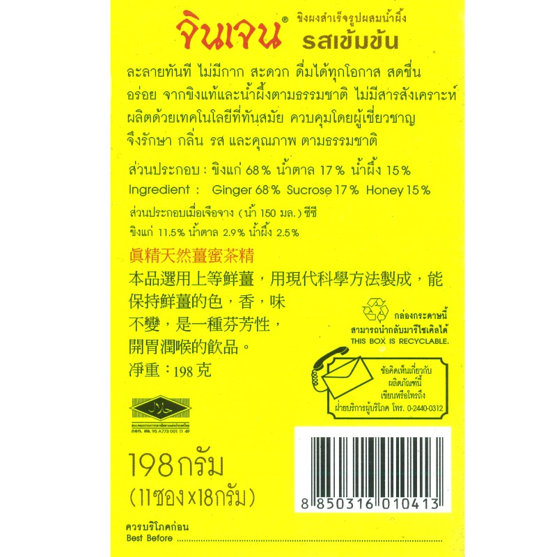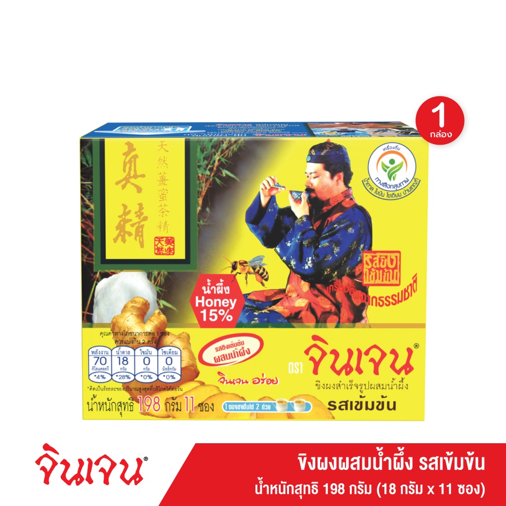จินเจน ขิงผง ผสมน้ำผึ้ง รสเข้มข้น x 1 กล่อง (11 ซอง ) 198 g เครื่องดื่มสมุนไพร น้ำขิง ขิงผงสำเร็จรูป ขิงผงแท้