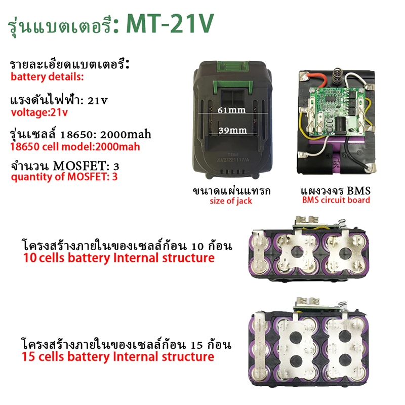 TANZU MT-21V แบตเตอรี่ 18650 ทนทาน ใช้กับ MAKITA ประแจไร้สาย เครื่องเจียร เลื่อยไฟฟ้า