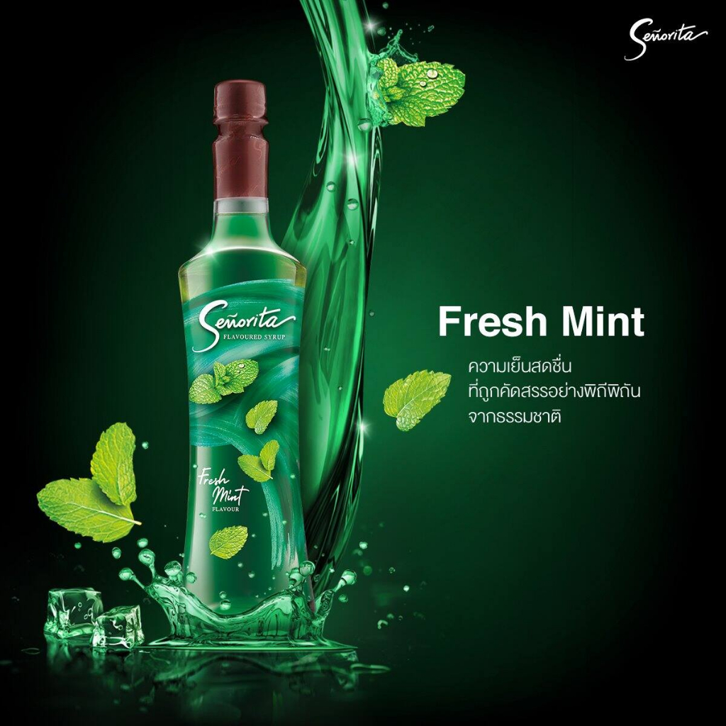 (1 ขวด) Fresh Mint ไซรัปมิ้นท์ Syrup Senorita - เซนญอริตา น้ำเชื่อมแต่งกลิ่นเฟรชมิ้นท์ 750ml.