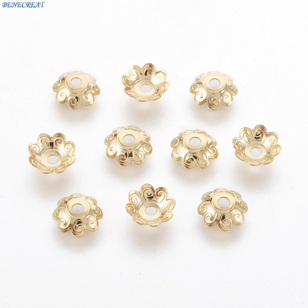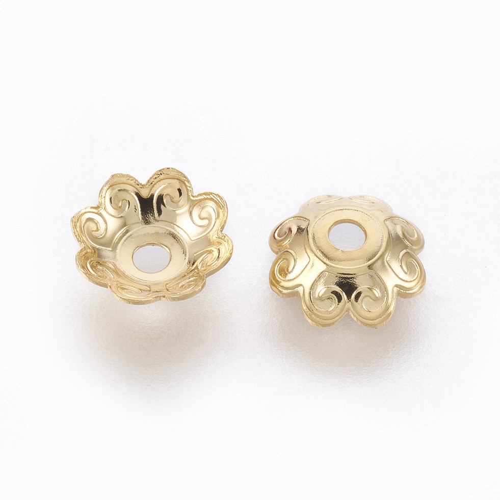 ลูกปัด สเตนเลส 304 รูปดอกไม้ ชุบทอง 10-300 ชิ้น