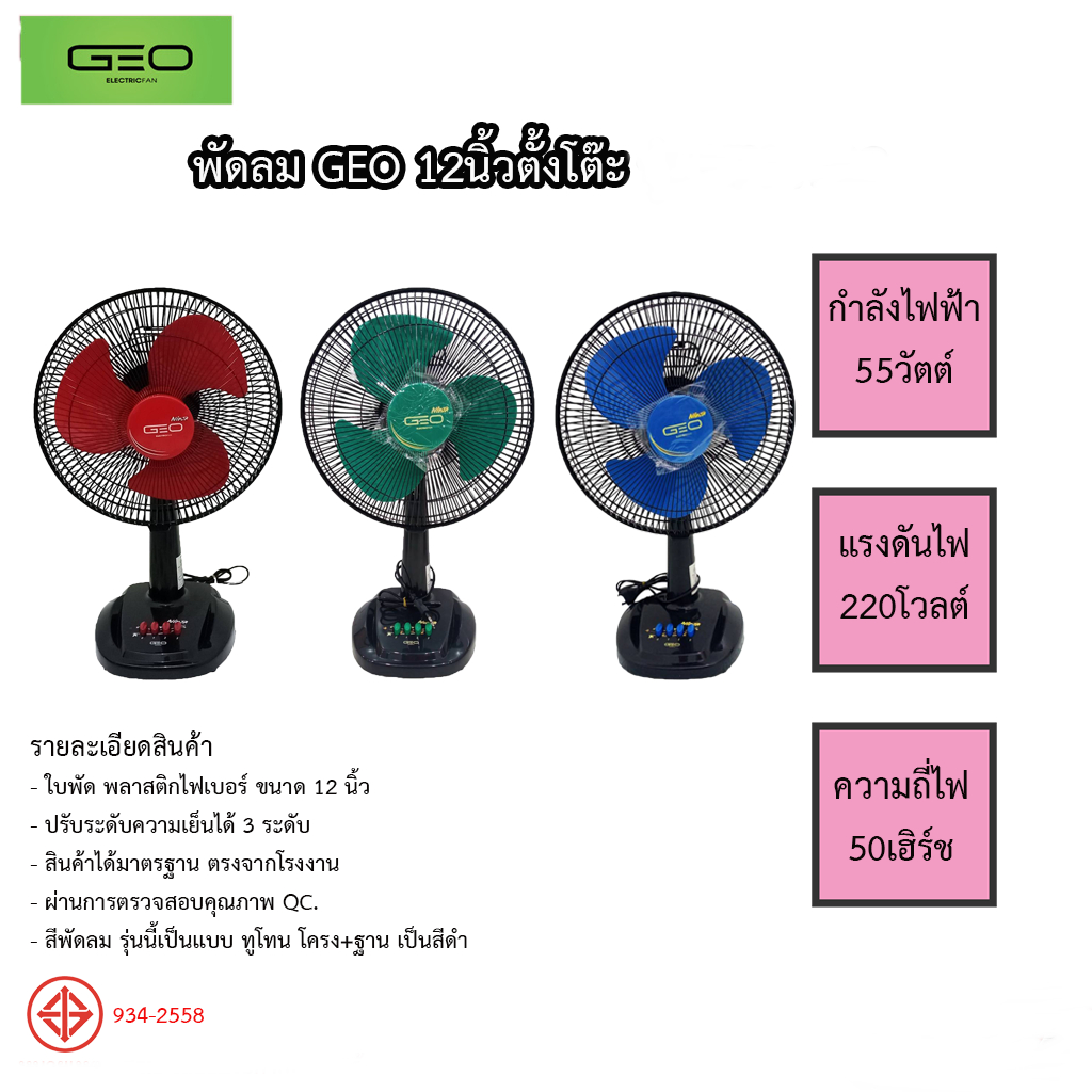 GEO พัดลมตั้งโต๊ะ 12 นิ้ว 3 ใบพัด GEO12B