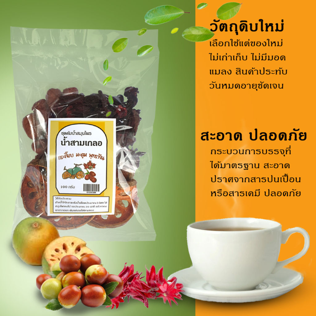 สมุนไพรน้ำสามเกลอ 100 กรัม กระเจี๊ยบ พุทราจีน มะตูม 3เกลอ