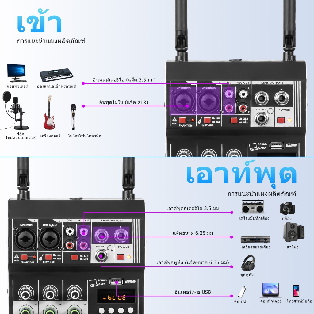 มินิ มิกเซอร์ 4 ช่อง โลหะ เคส มิกเซอร์ บลูทูธ USB เล่น +48V Phantom พาวเวอร์ ดูอัล มือถือ ไมโครโฟน พาวเวอร์ มิกเซอร์