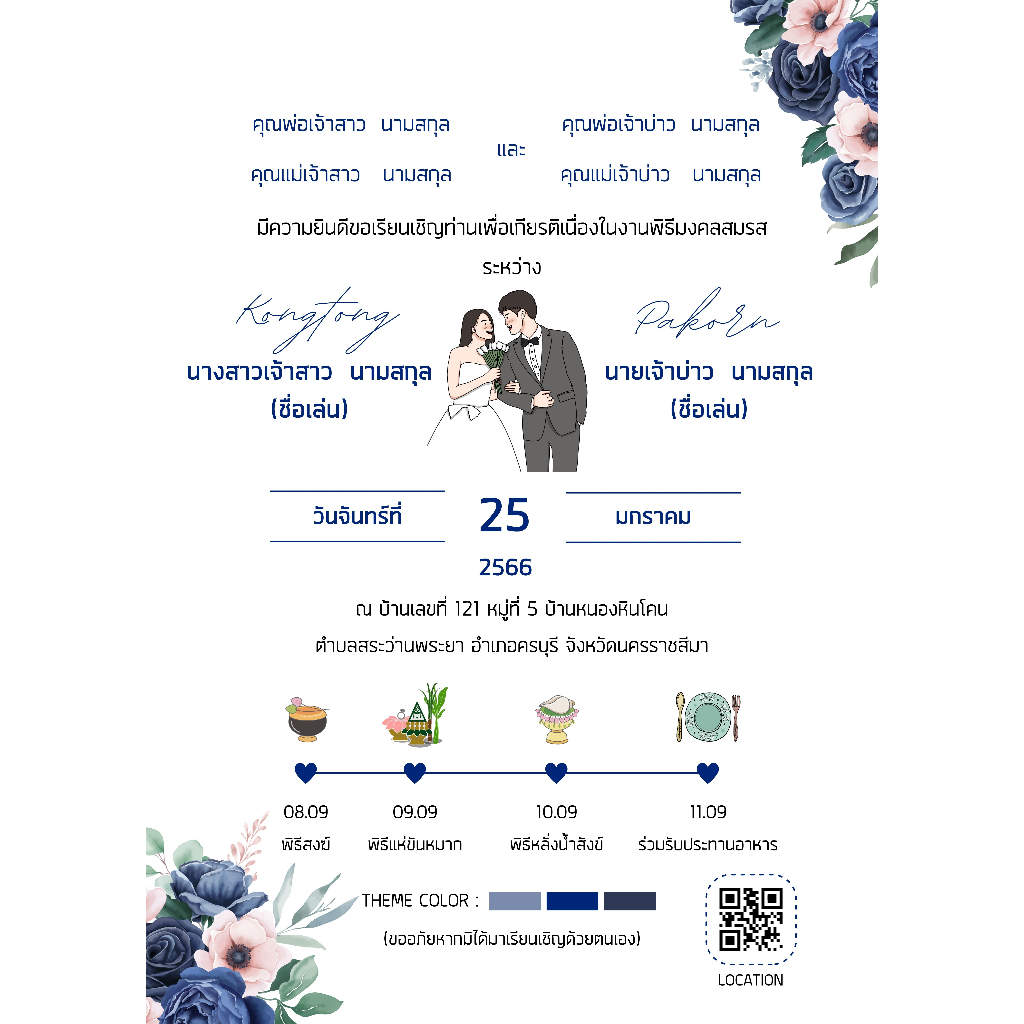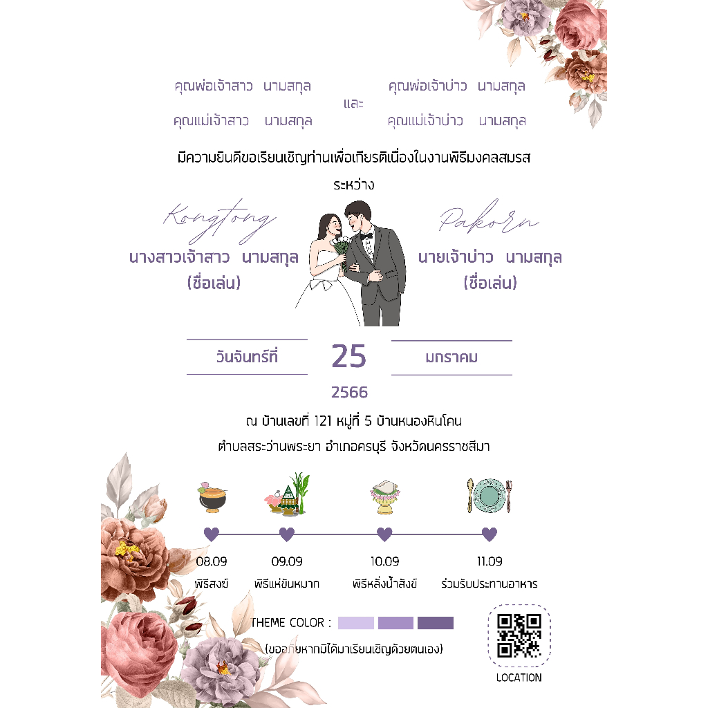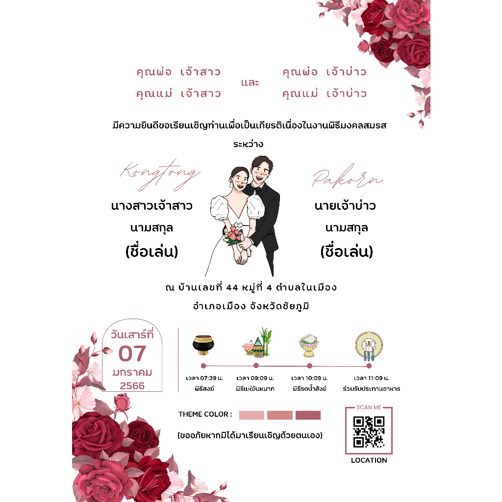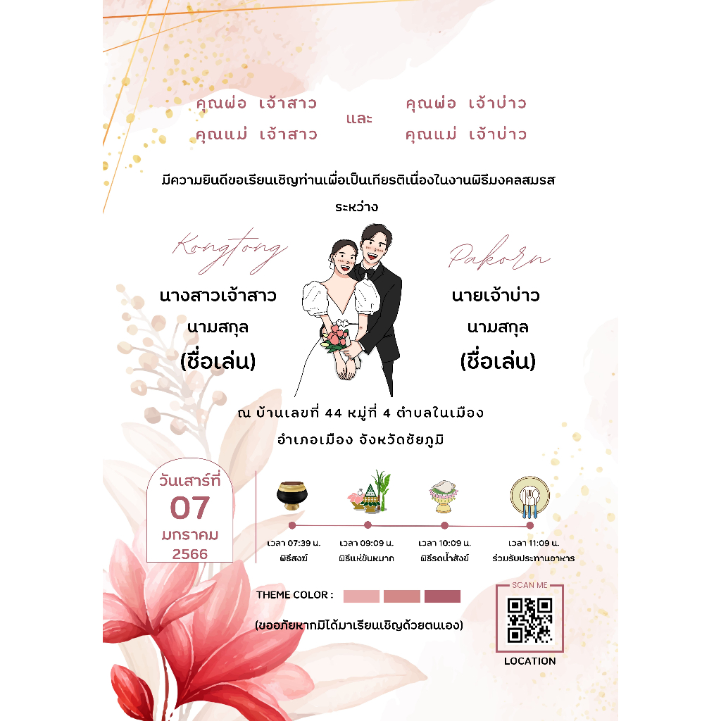 การ์ดแต่งงาน 1 ด้าน พร้อมซอง