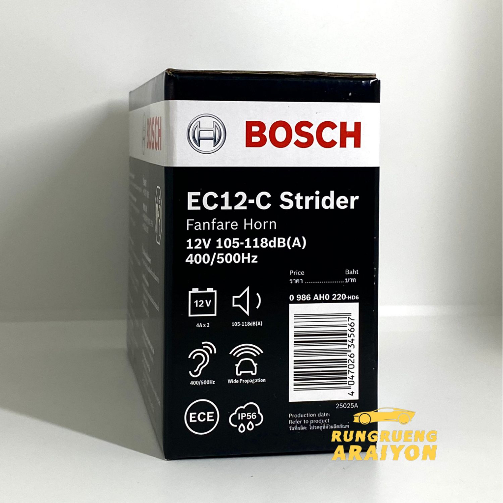 Bosch แตรหอยโข่ง EC12-C (แท้) กันน้ำ 12V (ฟรีสายกราวด์ 2 เส้น) จำนวน 1 คู่