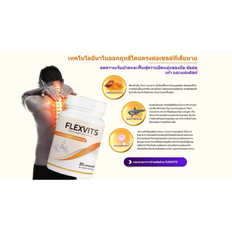 ✅ ส่งฟรี !!🚗 Flexvits ผลิตภัณฑ์เสริมอาหารสำหรับกระดูกและข้อ แท้💯% กล่อง 20 แคปซูล