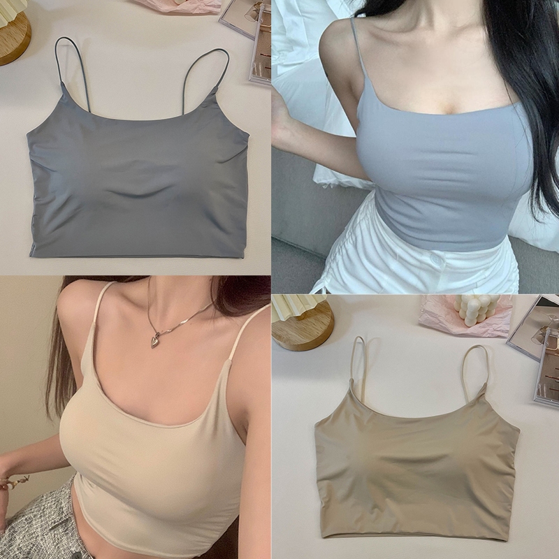 เสื้อชั้นใน ผ้าเรยอน ไร้รอยต่อ สวยงาม พร้อมแผ่นรองหน้าอก แฟชั่นฤดูร้อน สําหรับผู้หญิง