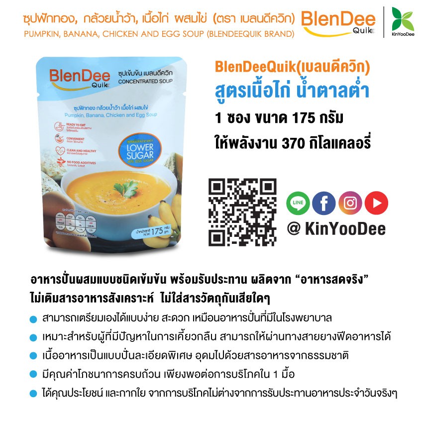 กินอยู่ดี BlenDee Quik เบลนดีควิก อาหารสำหรับผู้ป่วย สูตรเนื้อไก่น้ำตาลต่ำ Low Sugar แพ็ค 12 ซอง