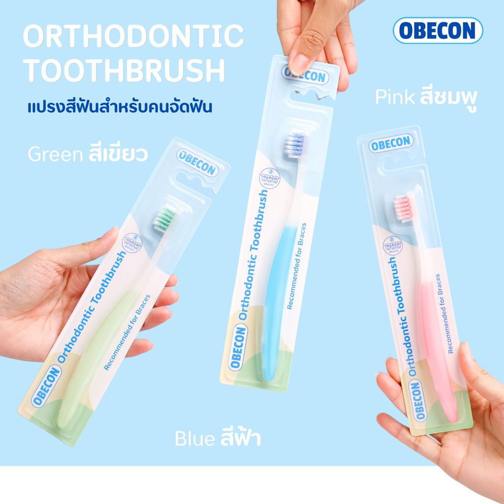 OBECON แปรงสีฟัน สำหรับคนจัดฟัน สีฟ้า 1 ด้าม รุ่นเบรสทู B2