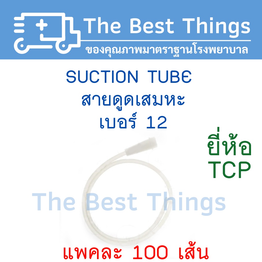 สายดูดเสมหะ Suction Catheter แบบไม่มี Control เบอร์ 6,8,10,12,14,16,18 ยี่ห้อTCP (100 เส้น)